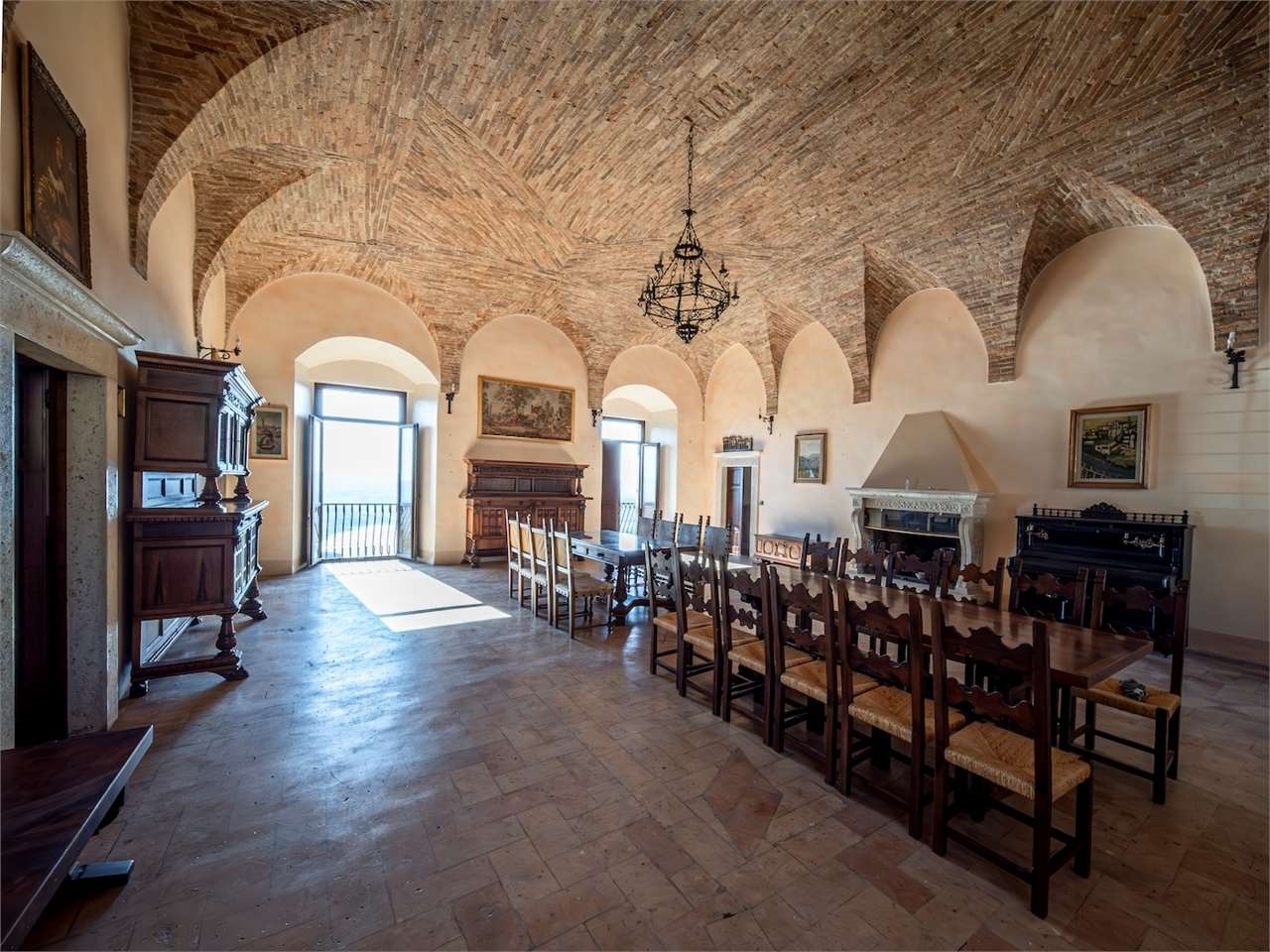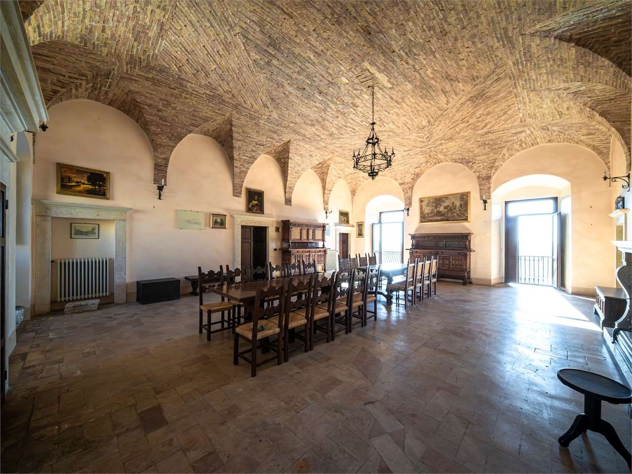 Prestigiosa dimora storica con terrazza panoramica sul lago di corbaracivitella del lago umbrianel cuore dell'umbria più autentica, tra todi e orvieto, all'interno dell'incantevole borgo medievale di civitella del lago, proponiamo in vendita una straordinaria residenza storica del xv secolo, rara opportunità immobiliare di assoluto pregio.immersa in un contesto di quiete e bellezza senza tempo, la proprietà domina il paesaggio circostante offrendo panorami aperti e suggestivi sul lago di corbara e sulla media valle del tevere, tra vigneti, oliveti e boschi secolari.la dimora, appartenuta alla nobile famiglia tuderte degli atti, si sviluppa su quattro livelli per una superficie complessiva di circa 550 mq, conservando intatti elementi architettonici originali di grande valore storico e artistico: facciate in pietra, inserti in marmo travertino, soffitti affrescati, camini monumentali, volte a vela e ambienti di rara eleganza.il collegamento tra i piani avviene tramite una raffinata scala interna in marmo rosso di prodo, elemento distintivo che accompagna il percorso attraverso spazi ampi, luminosi e scenografici.distribuzione degli ambienti:piano terraimportante ingresso di rappresentanza con doppio accesso, cucina abitabile, studio con soffitti affrescati, bagno e un maestoso salone panoramico con camino ottocentesco in marmo travertino, soffitti con volte a vela e grandi finestre che incorniciano il paesaggio umbro.piano primozona notte con due camere matrimoniali e due bagni, ideale come piano padronale o area ospiti.piano secondoampia zona living con cucina abitabile, grande salone con camino e accesso diretto al terrazzo panoramico a pozzo, autentico gioiello della proprietà. Il piano ospita inoltre quattro camere matrimoniali e due bagni, rendendolo perfetto per accogliere famiglia e ospiti in totale comfort.piano seminterratoaffascinante salone in pietra con volta a botte in mattoncini, affacci panoramici sorprendenti, cantina e accesso diretto alla corte esterna esclusiva, ideale per momenti conviviali o degustazioni private.valore storico e unicitàla dimora è situata all'interno del prestigioso cortile degli atti, nel cuore del centro storico, con accesso dall'iconico arco di diomede, edificato da diomede degli atti, nobile tuderte e rettore della chiesa di santa maria. Un contesto di assoluta riservatezza e fascino, riservato a poche proprietà di grande valore storico.completa la proprietà un terreno privato di circa 1.300 mq, con accesso diretto dalla residenza, elemento raro per un immobile all'interno di un borgo medievale.una residenza esclusivaquesta dimora rappresenta la soluzione ideale come:residenza privata di prestigiodimora di rappresentanzaresidenza per ospitalità di alto livelloinvestimento immobiliare di valore storico e patrimonialeun'opportunità unica per chi desidera vivere o investire in una residenza senza tempo, dove storia, panorama e lusso discreto si fondono in un'esperienza abitativa irripetibile.classe energetica: g