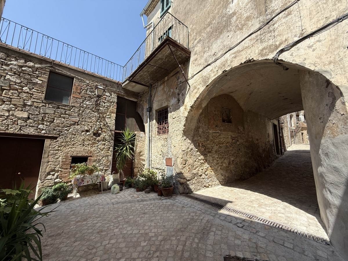 Questa spaziosa e autentica casa di paese si trova nel centro storico del pittoresco borgo di calvi dell'umbria, nel sud dell'umbria, al confine con il lazio. La casa, che comprende, tra le altre, un soggiorno, una cucina abitabile, una sala da pranzo, 4 camere da letto e due bagni, tutti spaziosi, è ancora in parte nel suo stato originale, con diversi elementi caratteristici, come i bei pavimenti piastrellati e i soffitti interamente in legno nella casa, i soffitti a botte nelle cantine e i murales sulla facciata esterna. Sebbene strutturalmente in buone condizioni, l'immobile necessita di interventi di ammodernamento/rinnovazione per poter essere comodamente occupato. Con il restauro delle tre cantine situate al piano terra e dell'ampia soffitta al secondo piano, la proprietà potrebbe essere utilizzata anche come piccolo b&b, o abitazione con studio o negozio a casa. Le tre terrazze, di cui una con una superficie di quasi 70 m2 (!), offrono la possibilità di sedersi all'aperto e godere del panorama sul paese e la campagna circostante. Non immediatamente pronta per essere abitata, ma una casa che può ancora essere rinnovata e rifinita secondo i propri gusti.divisione: p.t. - ingresso con scala al primo piano e accesso a un'ampia cantina con soffitto a botte. Da questa cantina si accede a un secondo ingresso, anch'esso direttamente accessibile dall'esterno, con accesso a una seconda cantina con soffitto a botte, precedentemente utilizzata come cantina per il vino, e, tramite una breve scala, a una terza cantina; p.1. - la scala interna conduce al disimpegno al piano superiore, che dà accesso alla cucina abitabile con camino e al soggiorno. Adiacente al soggiorno si trova una piccola terrazza sul tetto di circa 11 m2. Dalla cucina si accede alla spaziosa terrazza sul tetto di circa 69 m2 e alla sala da pranzo situata accanto alla cucina. Dalla sala da pranzo e dal soggiorno parte un secondo corridoio che dà accesso a una spaziosa camera da letto con bagno privato, a una seconda spaziosa camera da letto e a un bagno con vasca. Una scala in questo corridoio conduce al secondo piano; p.2. - soffitta composta da un ampio pianerottolo o salotto, da cui si accede a una camera da letto, una seconda camera da letto con terrazza di circa 13 m2 e un ampio spazio sottotetto. Quest'ultimo spazio è ancora allo stato grezzo.la casa è in parte ancora nello stato originale e strutturalmente in buone condizioni, con bei pavimenti in piastrelle e soffitti interamente in legno, ma necessita di ammodernamento e/o ristrutturazione: gli infissi esterni, gli impianti tecnici e le finiture di bagni e cucina devono essere sostituiti. Se lo si desidera, le cantine al piano terra potrebbero essere ristrutturate e poi utilizzate per vari scopi, anche perché queste cantine sono anche direttamente accessibili dall'esterno. Anche l'ampia soffitta al secondo piano deve essere restaurata e può poi essere utilizzata per vari scopi.nessun giardino, ma tre terrazze, una di circa 89 m2, in parte coperta e accessibile dalla cucina abitabile, una di circa 11 m2 con accesso dal soggiorno, entrambe al primo piano, e una di circa 13 m2 con accesso da una delle due camere da letto al piano soffitta.sotto la terrazza del soggiorno si trova una piccola cantina di circa 4 m2, accessibile direttamente dall'esterno. Dietro a questa si trova una seconda cantina di circa 14 m2, anch'essa direttamente accessibile dall'esterno, due piani sotto il bagno e parte del soggiorno, situati al primo piano.elettricità, acqua comunale, fognatura comunale, gas metano. Le utenze devono essere riallacciate e gli impianti elettrici e di riscaldamento devono essere rinnovati.la maggior parte dei negozi e dei servizi sono presenti a calvi dell'umbria a pochi passi. Uscita a1 magliano sabina 12 km, narni 18 km, terni 31 km, viterbo 53 km, trevignano romano (lago di bracciano) 55 km, spoleto 63 km, roma 78 km, perugia 103 km. Classe energetica: g