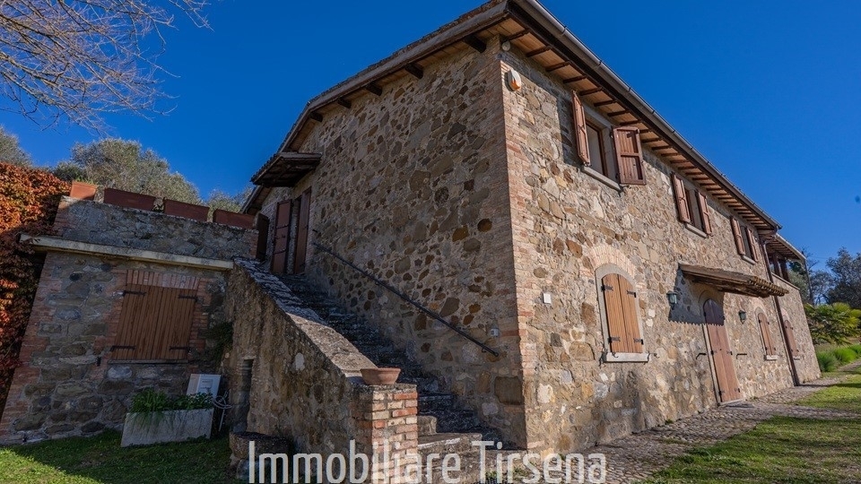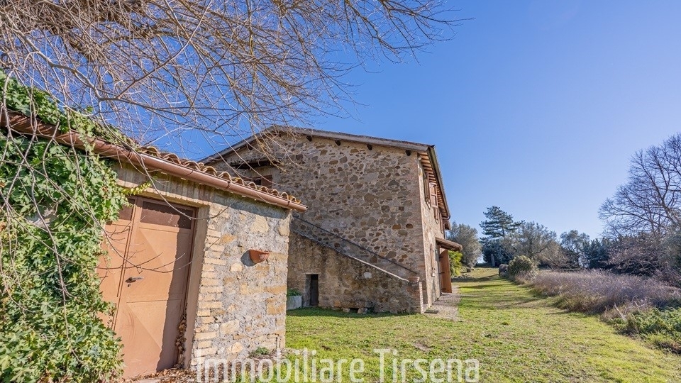 Il casale è situato, alla quota di 300 m s.l.m., tra vigneti e uliveti, sulle colline che fronteggiano da est la rupe di orvieto, in posizione panoramica eccellente.l'edificio, in pietra a faccia vista, è costituito da due unità abitative indipendenti per complessivi 290 mq, poste rispettivamente al piano terreno e al primo piano. Il piano terreno comprende anche un garage (26 mq), la centrale termica a servizio delle due unità abitative ed ha come annesso un cellaio. L'immobile, ristrutturato non di recente, è pienamente funzionale per i numerosi interventi migliorativi realizzati nel tempo ed è dotato di tutti i comforts.l'appartamento al piano primo (180 mq) è formato da ingresso, sala da pranzo, soggiorno con camino, cucina abitabile, due stanze da letto e due bagni e da un terrazzo panoramico coperto di 50 mq accessibile anche dall'esterno. L'appartamento al piano terreno (110 mq) è composto di soggiorno-pranzo con camino, cucina, stanza da letto e bagno. Fanno da sfondo alla zona d'ingresso del primo piano i resti dell'originario nucleo abitato di circa 50 mq, destinati a legnaia, deposito attrezzi e forno a legna all'aperto, la cui superficie può essere ampliata di 100 mq per uso abitativo. Completano gli annessi: una cantina, ricavata all'interno di una grotta e un deposito di materiali vari posto all'interno di un'altra grotta di maggiori dimensioni.l'edificio è contornato da un terreno di circa 10.500 mq di cui più della metà costituito da uliveto (100 piante) e da un piccolo bosco. La restante parte (circa 4.000 mq), completamente recintata, è destinata a giardino con piante da frutto e di alto fusto tra cui un gelso secolare. In questa zona è possibile realizzare una piscina.il casale dista circa 8 km dal centro storico di orvieto. L'abitato di ciconia, fornito di ogni tipo di servizi, è raggiungibile in cinque minuti su strada prevalentemente asfaltata.