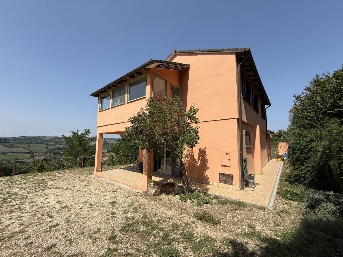 Questa bella villa di campagna nasce negli anni '80 come casa prefabbricata, poi convertita e ampliata all'inizio degli anni 2000 nella 'vera' casa di oggi. Si trova in alto su una collina, con una fantastica e ampia vista sulla campagna collinare circostante e sul paese di otricoli. Sotto la casa c'è una bella piscina di 4 x 8 m con la stessa vista, e sotto di essa si estendono i quasi 2 ettari di terreno inclusi nella vendita. La casa a due piani dispone al piano terra di un ampio soggiorno con cucina a vista e camino e di una camera da letto con bagno. Al primo piano si trovano due camere da letto, due bagni, un salotto (di cui si potrebbe fare un'ulteriore camera da letto, se lo si desidera) e un giardino d'inverno utilizzato come ulteriore soggiorno. Inoltre, al piano terra ci sono due portici esposti a ovest, da cui è possibile godere dei tramonti durante tutto l'anno. è in buone condizioni ed è immediatamente abitabile. Adatta sia come residenza permanente che come casa per le vacanze, con la possibilità di affittare la casa nei periodi in cui non viene utilizzata, come fa attualmente l'attuale proprietario.divisione: pt - ingresso da uno dei due portici su un ampio soggiorno con cucina a vista, camino, porte-finestre sul secondo portico e scale che portano al piano superiore, disimpegno, dove si trova la caldaia, con accesso a un bagno con doccia e a una camera da letto con porte-finestre sul giardino; p1 - accesso dalla scala interna, salotto, soggiorno nel giardino d'inverno (in passato accessibile direttamente dall'esterno tramite una scala esterna, attualmente non più presente), due camere da letto, di cui una con balcone alla francese, due bagni, uno con vasca e l'altro con doccia.annesso un piccolo manufatto di 2,6 x 2,6 m per il deposito di attrezzi e mobili da giardino, in cui si trova anche un serbatoio d'acqua con pompa, come riserva.poco meno di 2 ettari di terreno, 18.350 m2, costituiti principalmente da seminativi, oltre a un uliveto e a una macchia di bosco. Ci sono anche diversi alberi da frutto, erbe aromatiche e arbusti ornamentali. Il terreno si estende quasi interamente sotto la casa ed è in leggera pendenza.piscina: 4 x 8 m. La piscina si trova sotto la casa ed è accessibile tramite scale. C'è una terrazza solarium su due livelli, una direttamente sulla piscina e l'altra un po' più in alto.elettricità, acqua comunale, serbatoio d'acqua con pompa, fossa settica a dispersione, bombolone gpl, impianto di riscaldamento con termosifoni + 1 camino, aria condizionata nelle 3 camere da letto, internet wi-fi tramite banda larga o rete mobile.la maggior parte dei negozi e dei servizi sono disponibili a otricoli a circa 4,5 km. Calvi dell'umbria 7 km, magliano sabina 12 km, uscita a1 magliano sabina 7 km, narni 19 km, terni 33 km, viterbo 48 km, trevignano romano 51 km (lago di bracciano), orvieto 63 km, roma 75 km, perugia 104 km. Classe energetica: g
