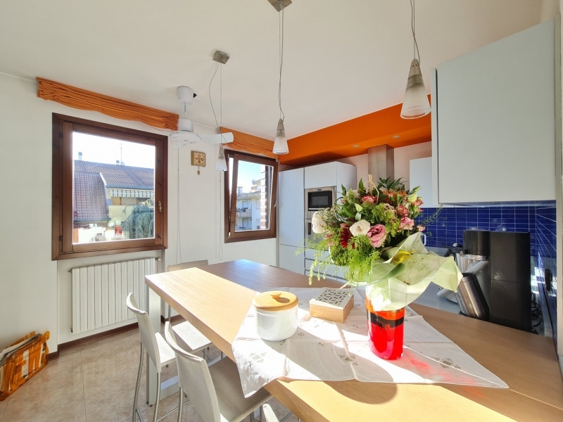Appartamento trilocale situato in quartiere residenziale ad abano, in prossimità del centro.con una superficie di circa 135 mq, l'immobile offre spazi luminosi ed accoglienti. Posto al primo piano con mansarda, si compone d'ingresso sul soggiorno, la cucina vivibile è separata, disimpegno, bagno arredato con doccia, il piano è rifinito con pavimenti chiari e dettagli contemporanei, la zona notte nella mansarda ospita due camere da letto con pavimenti in legno, entrambe servite da poggioli privati che garantiscono privacy e relax all'aperto, completa il piano il bagno di comode dimensioni, finestrato con vasca. tra le caratteristiche aggiuntive troviamo l'aria condizionata, il riscaldamento autonomo.la proprietà include anche garage doppio al piano interrato.le spese condominiali sono contenute.posizione strategica, la casa è ben servita da supermercati e mezzi pubblici, rendendo facile l'accesso alle principali vie di comunicazione della zona.