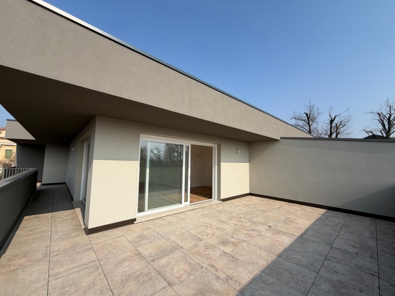 In un elegante quartiere residenziale, a pochi passi dal centro storico, proponiamo nuovo attico in pronta consegna inserito in una palazzina di sole 5 unità.l'abitazione si sviluppa interamente su un unico livello ed è caratterizzata da spazi moderni e molto luminosi.la zona giorno è composta da un ampio soggiorno open space con cucina a vista, valorizzato da grandi vetrate che garantiscono luce naturale durante tutto il giorno e accesso diretto alla splendida terrazza principale di circa 56 mq, ideale per pranzi all'aperto e momenti di relax.la zona notte offre:3 camere da letto2 bagniripostiglio con attacchi per lavanderiale terrazze complessive raggiungono circa 64 mq, rendendo questa soluzione rara e particolarmente vivibile.completano la proprietà:garage doppio al piano terraposto auto esternouna soluzione moderna, efficiente (classe a4) e perfetta per chi desidera vivere in un contesto esclusivo con ampi spazi esterni.