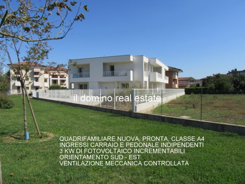 In zona tranquilla e residenziale ad abano terme, disponibili da subito nuove porzioni di villetta quadrifamiliare in classe energetica a4, dotate di impianto fotovoltaico, riscaldamento a pavimento in pompa di calore, ventilazione meccanica controllata, aria condizionata in pompa di calore, impianto di allarme. le porzioni sono composta da: ingresso indipendente sia carraio sia pedonale, giardino di proprietà, al piano terra ingresso, soggiorno con cucina open space, bagno, ripostiglio centrale termica e garage + posti auto. Al piano primo reparto notte diviso in 3 camere da letto di ampia metratura, 2 bagni, terrazze.nessuna spesa comune.