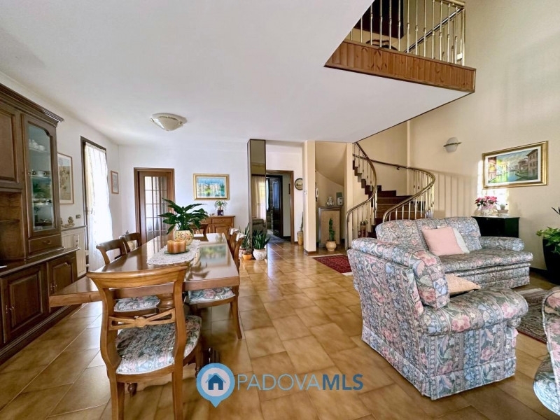 Immobile in esclusiva al gruppo padova mlsin centro paese, comoda a tutti i servizi, proponiamo in vendita una splendida porzione di bifamiliare caratterizzata da ampi spazi e grande luminosità. L'abitazione, disposta su tre livelli, si distingue per il suo design raffinato e accogliente, ideale per chi cerca una soluzione abitativa spaziosa e ben organizzata.salendo dalla scala esterna si accede al primo piano, dove si viene accolti da un ampio e luminoso soggiorno, impreziosito da un elegante soppalco che dona ariosità all'ambiente e crea un suggestivo affaccio sulla zona giorno. La doppia altezza del soffitto e la scala elicoidale con ringhiera dorata conferiscono fascino e carattere all'abitazione. Su questo livello troviamo anche una cucina abitabile, un bagno e una camera, all'interno della quale si trova una scala interna in legno che collega direttamente al piano terra.scendendo al piano terra, l'abitazione dispone di una spaziosa taverna perfetta per momenti conviviali, un bagno e un ampio garage.salendo invece al secondo piano dall'elegante soppalco, che dona una piacevole apertura sull'ampio soggiorno, si accede alla zona notte, composta da un disimpegno, 2 camere da letto singole, una camera matrimoniale e un bagno. Le stanze, luminose e ben distribuite, offrono il massimo comfort e vivibilità.questa soluzione è perfetta per chi desidera indipendenza senza rinunciare alla comodità del centro e alla vicinanza di tutti i servizi. Gli interni, curati nei dettagli, uniscono fascino classico e funzionalità, con finiture di pregio e spazi ben distribuiti. Un'opportunità imperdibile per chi cerca una casa elegante, spaziosa e ideale per la vita familiare.