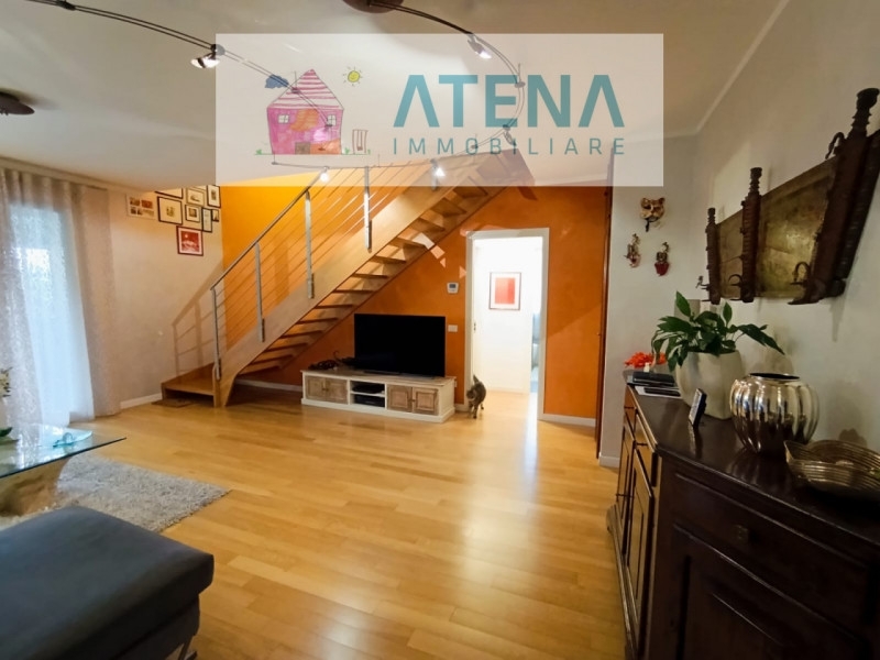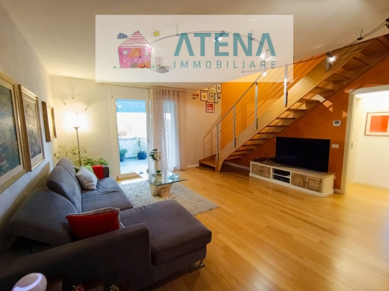 Rif. 26616rubanoa rubano, vicinissimo al futuro tram e con il supermercato a due passi, proponiamo recente ed elegante appartamento costruito nel 2012, al primo ed ultimo piano, in piccola palazzina di sole 5 unità, senza ascensore.la soluzione, in stile moderno e dotata di ogni comfort abitativo, è perfetta per chi cerca tranquillità e la comodità ai mezzi pubblici per raggiungere il centro di padova, senza rinunciare agli spazi e al risparmio energetico.l'appartamento è impeccabile, tenuto con estrema cura e pronto per essere abitato. Non necessita di lavori e si sviluppa su due livelli.al primo piamo troviamo un generoso ingresso che introduce al soggiorno, spazioso e ben distribuito, con comoda porta a vetri per l'uscita in terrazza, cucina separata abitabile, disimpegno, bagno finestrato con doccia, terrazzone profondo perfetto per mangiare all'aperto.salendo un'elegante scala in legno, si raggiunge la zona notte, divisa in tre camere, una suite padronale da 20 mq, con spettacolare travatura ricurva, una matrimoniale da 14 mq, una camera singola e un ampio bagno con vasca, tutto regolarmente accatastato.al piano terra presente un garage singolo e un posto auto scoperto di proprietà.l'immobile è del 2012, ha la caldaia a condensazione, riscaldamento a pavimento in tutta la casa, tapparelle motorizzate, impianto di aria condizionata caldo/freddo, impianto solare termico, basculante motorizzato.classe en. 'a2'prezzo € 308.000
