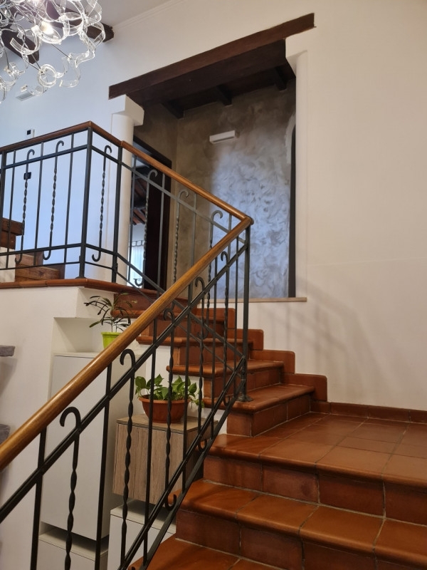 Lendinara. Probabilmente l' aggettivo più appropriato per descrivere questa splendida abitazione è: inimitabile! le foto ci dicono già di una casa senza eguali, ma poi, dopo averla vista dal vivo, tutto diventa meravigliosa realtà. L' ingresso ampio e luminoso di fronte ad una bellissima scala a vista, ai soffitti in legno e al caldo camino fa iniziare la visita in un modo come di rado succede; la cucina è grande e molto elegante con arredi di qualità, la sala da pranzo di dimensioni ottime è impreziosita dalle finiture di travi a vista, dal termocamino e da elegantissimi pavimenti; la sala è poi ambiente cosù particolare che l' espressione 'far salotto' sembra sia nata in questa stanza, realizzata con la qualità di legni di pregio è davvero ideale per il relax più bello con amici per un film o una partita in tv o a carte ma anche romantico per guardare le stelle dall' ampia vetrata e dalla terrazza prospiciente, le tre camere da letto per caratteristiche e spazi sono una più bella dell' altra, i bagni sono due capolavori, uno con assieme la lavanderia e l' altro una vera e propria sala da bagno con vasca idromassaggio, predisposizione per cabina idromassaggio e cromoterapia, televisione e curato in ogni dettaglio e finitura. Il giardino è compatto e molto curato, da accesso ad un comodo e abbondante garage doppio e si affaccia su uno splendido e considerevole portico con camino che in primavera ed estate diventa la più bella appendice abitativa della casa. La richiesta economica, comprensiva praticamente di tutti gli arredi, è realmente quella che state leggendo. Inimitabile, davvero.