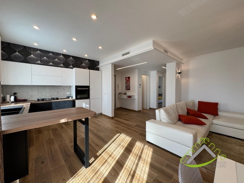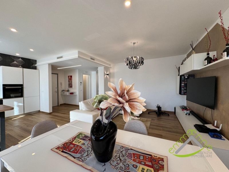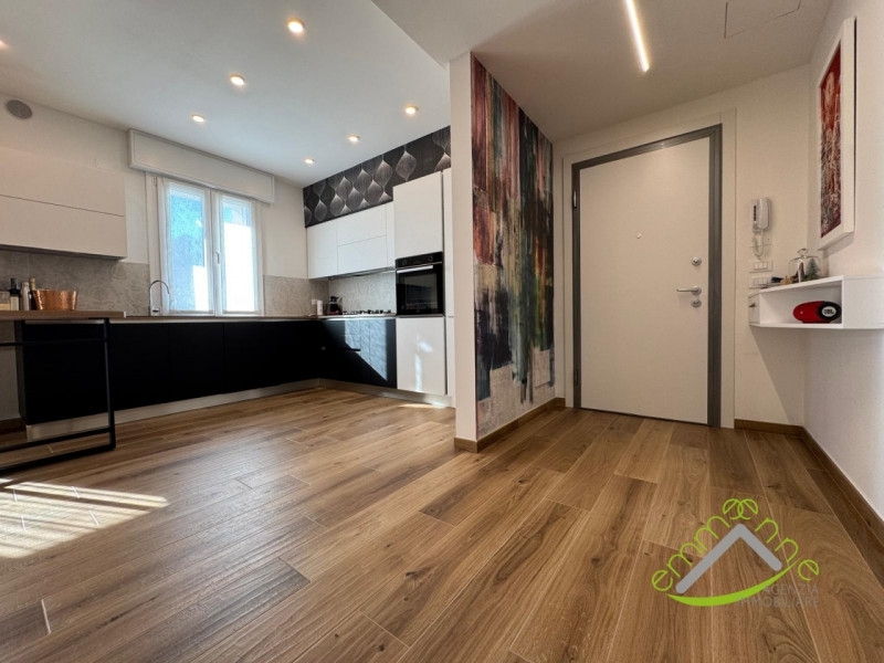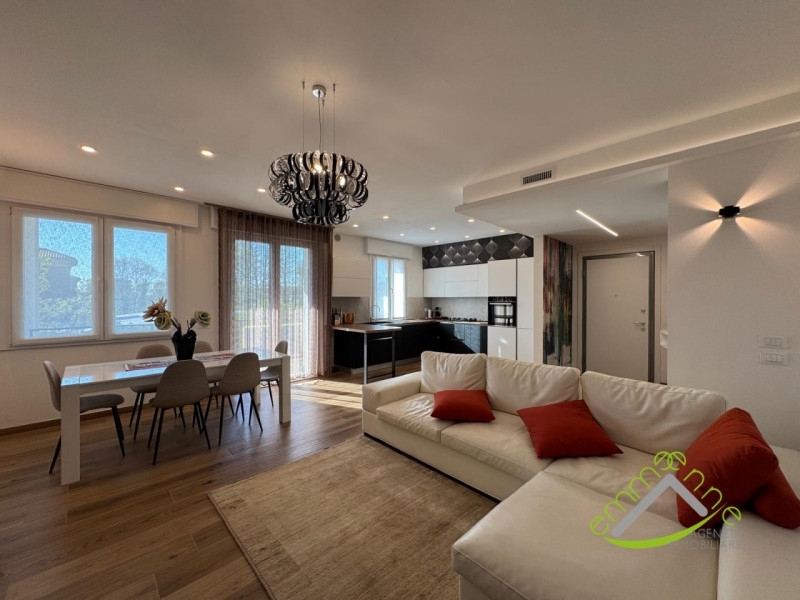 Dolo centro: ampio e luminoso soggiorno, con cucina a vista. Appartamento, totalmente ristrutturato nel 2022, posto al piano secondo in palazzina servita da ascensore. Dall'ampio disimpegno si accede al bagno, al ripostiglio/lavanderia, alla camera matrimoniale e alla camera doppia. Munito di ampio terrazzo accessibile dalla zona giorno e di un secondo generoso terrazzo accessibile dalla zona notte. Oltre che della generosità degli spazi abitativi si pregia anche delle ricercate finiture. Munito di portoncino blindato, riscaldamento a pavimento diviso a zone, raffrescamento a soffitto, serramenti in pvc con triplo vetro camera con anta e ribalta, tapparelle in alluminio coibentate e motorizzate, caldaia a condensazione , cappotto da 12 cm, insonorizzazione. Ripostiglio/ magazzino di ca. 23 mq accessibile dall'interno della palazzina e garage posto al piano terra. Situato in centro a dolo, a pochi passi da tutti i negozi e servizi.