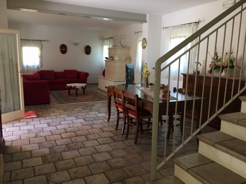 Nostra esclusiva. Villa di campagna del 1800, completamente restaurata nel 2002. La proprietà si estende su una superficie di ca. 380 mq con un parco privato di circa 1900 mq. La villa principale ( circa 250 mq con portico di 30 mq) offre uno spazio abitativo distribuito su due piani: al piano terra troviamo un ampio soggiorno con stube, cucina, bagno e lavanderia; al primo piano salottino, camera patronale con bagno e guardaroba, tre ulteriori camere da letto e altro bagno. Il riscaldamento é a pavimento al primo piano mentre il piano terra è dotato di riscaldamento a radiatori e di una bellissima stube in maiolica che garantisce calore aggiuntivo. L'immobile é dotato di impianto antifurto completo di allarme e tetto ventilato. A lato della villa vi è una barchessa autonoma (circa 105 mq di base) da restaurare che potrà essere trasformata secondo le proprie preferenze: ideale anche come garage con piccola palestra o sauna al piano terra e studio nella parte superiore.