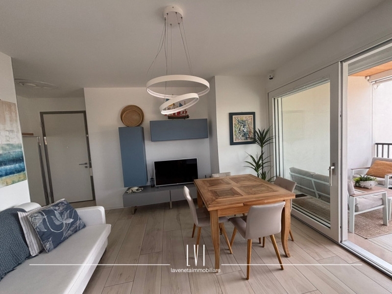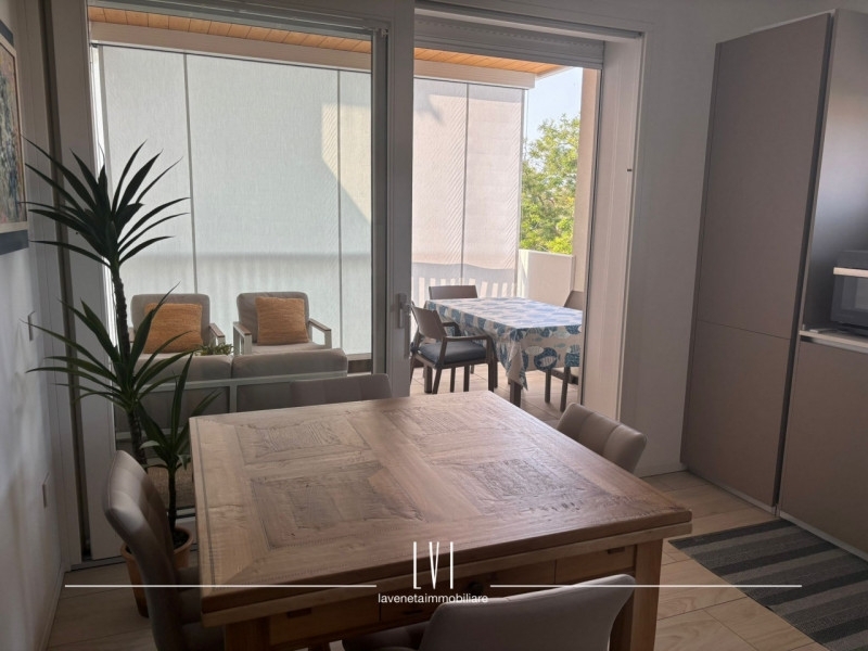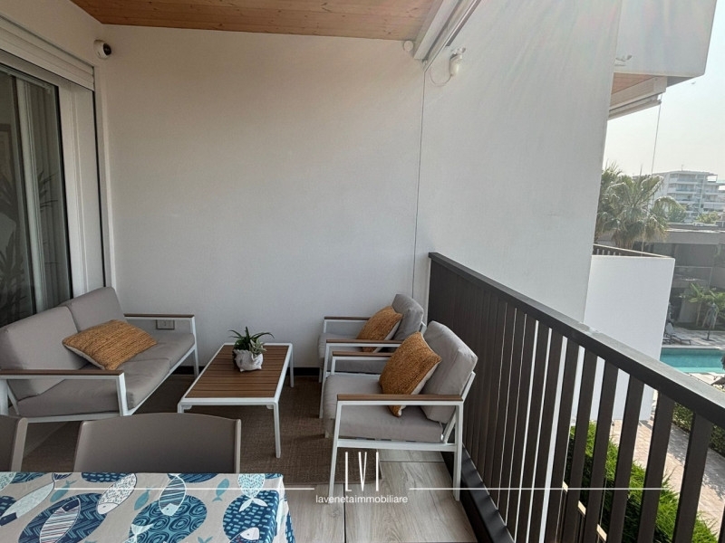 A pochi passi dal vivace cuore di piazza aurora, proponiamo in vendita un affascinante appartamento trilocale situato al secondo piano di una moderna costruzione completata nel 2021. Questa soluzione abitativa è rifinita con materiali di alta qualità e si presenta come nuova, pronta per essere vissuta.l'appartamento, distribuito su un unico livello, offre ampi spazi luminosi grazie alla sua esposizione ottimale a sud-ovest. La zona giorno accoglie un elegante soggiorno integrato con angolo cottura attrezzato su misura che garantisce funzionalità ed estetica; da qui si ha accesso diretto ad una loggia coperta perfetta per momenti di relax all'aperto, completa di salottino esterno e tavolo da pranzo.la zona notte ospita due spaziose camere da letto, ognuna dotata del proprio terrazzo privato dove poter godere della frescura delle serate estive. A disposizione degli ospiti vi è anche un bagno finestrato nella zona giorno oltre a un secondo bagno ben dimensionato che serve le camere.la proprietà viene venduta arredata con uno stile moderno e ricercato che esalta ogni ambiente dell'appartamento.il fabbricato dispone di ascensore per facilitare l'accesso ai piani superiori e include anche un garage molto grande al piano terra,senza dimenticare la splendida piscina condominiale; idealmente posizionata per il massimo comfort durante i caldi mesi estivi.situata in posizione strategica rispetto ai principali servizi quali supermercati, ristoranti e trasporti pubblici , questa casa rappresenta l'equilibrio ideale tra tranquillità e comodità: sarete infatti a breve distanza dalle spiagge della costa adriatica.non perdere l'occasione di vivere questo paradiso residenziale!contattaci subito per ulteriori informazioni o prenotare una visita!la veneta immobiliare - matteo rubino