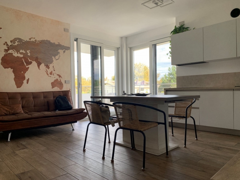Jesolo - venezia l'appartamento si compone di una luminosa zona giorno, completa di angolo cottura, con affaccio su un primo terrazzo. l'attico dispone di 2 camere da letto: una matrimoniale e una doppia perfetta per ospiti o familiari. Il bagno finestrato aggiunge comfort e funzionalità allo spazio abitativo.le aree esterne rappresentano il vero punto di forza della proprietà. Sono presenti due spaziosi terrazzi: uno si apre direttamente sulla zona giorno, perfetto per pranzi e cena all'aperto grazie alla copertura che protegge dal sole; l'altro, posto sul tetto, è un grande solarium dotato di doccia esterna, predisposizione per vasca idromassaggio e cucina all'aperto, ideale per vivere al meglio le serate estive. costruito nel 2021 con materiale eco-sostenibili in bioedilizia, l'edificio vanta caratteristiche ad alta efficienza energetica come impianto fotovoltaico, pompa di calore e accumulo acqua da 200 lt. Gli interni sono completamente arredati con gusto moderno; tra le comodità troviamo aria condizionata e tapparelle motorizzate.la proposta comprende anche un posto auto coperto riservato. L'immobile è situato in una posizione strategica, all'interno di un contesto residenziale tranquillo su strada chiusa, a soli 4 minuti in bici dal mare.contatta subito l'agenzia immobiliare per maggiori informazioni o per organizzare una visita. Rif. G2086