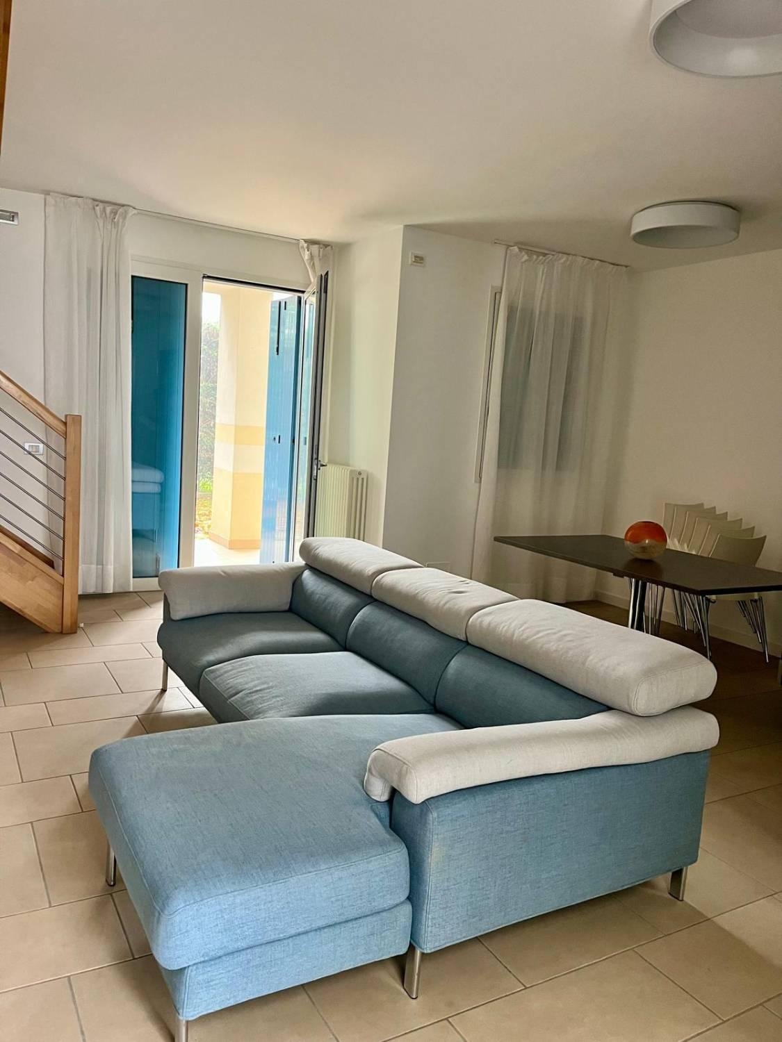 Villetta a schiera di testa sita in via cavalieri di vittorio veneto zona piazza. Marina.l'immobile è composto da: soggiorno con angolo cottura, disimpegno, ripostiglio e bagno con il box doccia al piano terra;2 camere matrimoniali e bagno con il box doccia.1 poggiolo2 giardini privatiposto auto riservatodotazioni: tv, lavatrice, lavastoviglie, forno, frigo e freezerclimatizzatoreriscaldamento a termosifonecontratto transitorio annuocanone mensile ? 1.150,00richiesta garanzie conto canonisono esclusi dal canone i seguenti costi: - utenze- deposito cauzionale di ? 3.450,00 pari a tre mensilità del canoni -spettanza agenzia pari ad 1 mensilità- pulizia finale appartamento