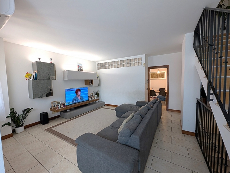 Nostra esclusiva! a martellago, vi presentiamo un'interessante porzione di testa di villetta a schiera, parte di un tranquillo complesso residenziale composto da sole sei unità abitative. Questa splendida casa si estende su una superficie totale di 135 mq ed è perfetta per famiglie in cerca di spazio e comfort.l'immobile offre un ingresso privato con scala esterna che conduce ad un accogliente portico. All'interno troverete un ampio soggiorno luminoso, una cucina separata ben attrezzata, disimpegno e bagno finestrato. Al piano superiore sono situate tre camere da letto: la camera matrimoniale misura 14,56 mq ed è dotata di terrazzo privato (3,13 mq), mentre le altre due camere misurano rispettivamente 12,91 mq (con ulteriore terrazzo da 2,55 mq) e 9,07 mq.non dimentichiamo la comoda mansarda accessibile tramite scala a scomparsa; uno spazio versatile ideale come magazzino. Il piano interrato ospita una cantinola/taverna con predisposizione della canna fumaria per l'installazione del caminetto il luogo perfetto per serate conviviali con amici! troverete anche una lavanderia funzionale e un garage spazioso.tra i numerosi vantaggi dell'abitazione segnaliamo i recenti lavori eseguiti: tutti i serramenti nuovi completi di zanzariere; impianto fotovoltaico da 6 kw con batteria d'accumulo da 15 kwh; colonnina per ricarica auto elettrica in garage; caldaia ibride e riscaldamento a pavimento suddiviso in zone giorno/notte. L'impianto d'aria condizionata assicura il massimo comfort durante tutto l'anno.situata nel cuore della zona martellago, questa proprietà gode della tranquillità tipica delle aree residenziali ma è comunque vicina ai principali servizi come scuole, negozi e mezzi pubblici. Non lasciarti sfuggire quest'opportunità unica!contattaci subito presso la nostra agenzia per organizzare una visita!
