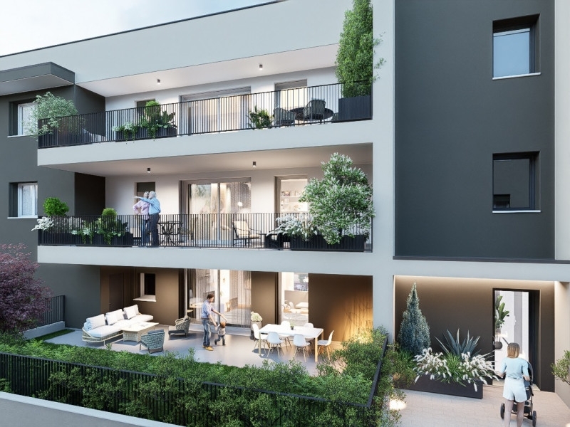 Scorze' centro nuova costruzioneappartamenti con tre camere composti da zona living di 40 mq con accesso al terrazzo di 30 mq, doppi servizi finestrati, ulteriore poggiolo di 15 mq nel reparto notte, garage al piano terra e posto auto. possibilità di personalizzare le finiture interne.a partire da € 325.000. Rif.nv2613dotazioni: cappotto termico da 14 cm, tapparelle motorizzate, portoncino blindato, serramenti in pvc con triplo vetro camera basso emissivo, pompa di calore per riscaldamento e acqua calda sanitaria, fotovoltaico da 3,3 kw per unità, pred. Aria condizionata e antifurto, pavimentazione in gres porcellanato in zona giorno e notte a scelta tra effetto legno, pietra o resina oppure legno prefinito rovere spazzolato nella zona notte.