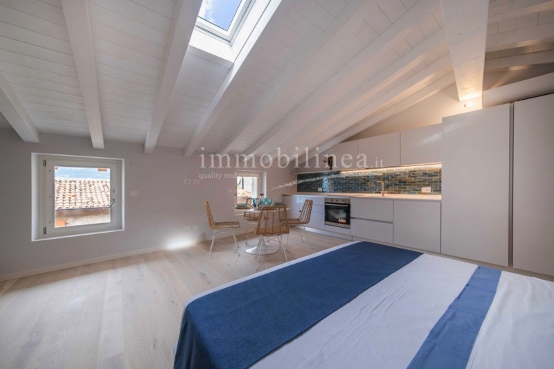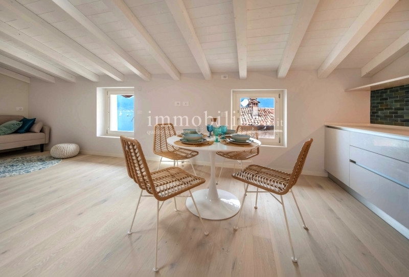 Castelletto di brenzone - poco più a nord di torri del benaco, la prima frazione che si incontra è castelletto di brenzone, caratteristico borgo della sponda settentrionale pre-alpina del lago di garda. Inserito in questa splendida cornice questo nuovissimo progetto di ristrutturazione coniuga il comfort della modernità al fascino del porticciolo storico. L'accesso, a due passi dal lago accompagna in un luminoso ed ampio appartamento mansardato al piano terzo. Le finiture di qualità e i dettagli ricercati lo rendono irresistibile per chi desidera vivere a pieno l'incantevole atmosfera del centro storico! eccellente soluzione come appoggio estivo o come investimento per le locazioni turistiche. Da vedere!