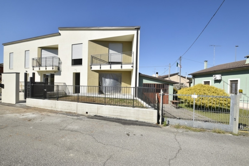 In tranquilla zona residenziale, proponiamo ampia porzione di villa bifamiliare di nuova costruzione.al piano terra, zona giorno open space di 50 mq con ampie vetrate servite da porticato abitabile e grazioso giardino; da un disimpegno accediamo al bagno finestrato con box doccia a servizio della zona giorno. La cucina affaccia sul giardino retrostante.tramite una scala posta nel disimpegno al piano terra accediamo al reparto notte, composta da: due camere matrimoniali (una delle quali servita da terrazzino), una camera singola ed un secondo servizio finestrato.al piano interrato troviamo due comode cantine di circa 70 mq e due garage di circa 60 mq.l'abitazione sarà in classe energetica 'a4', con particolare attenzione all'isolamento termico/acustico con un cappotto esterno da 12 cm. Sarà inoltre dotato di un impianto di pannelli fotovoltaici per la produzione di energia elettrica per un totale di 6 kw. Le singole unità avranno riscaldamento a pavimento in pompa di calore con accumulo per l'acqua calda sanitaria. Serramenti in legno/alluminio con doppio vetro e taglio termico. Tapparelle motorizzate.tempi di consegna dalla stipula del preliminare di circa 3 mesi.la compravendita sarà ad imposta di registro (no iva).