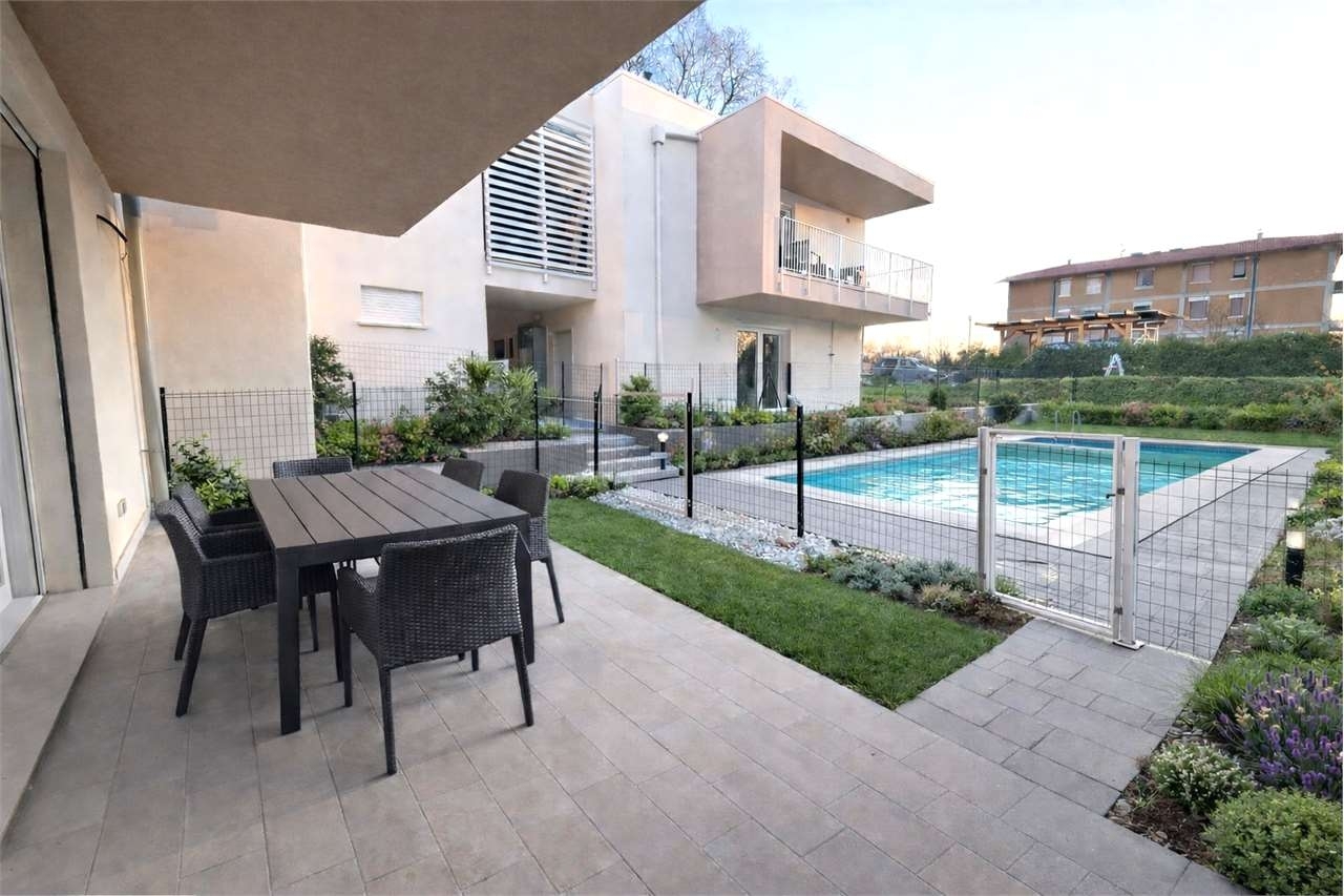 Nuovo trilocale con giardino classe a4 residence con piscina pronta consegna.a pochissimi minuti dal lago, in zona tranquilla e ben collegata ai principali servizi, proponiamo splendido trilocale di nuova costruzione situato all'interno di un elegante residence appena ultimato composto da sole 8 unità abitative con piscina condominiale.l'appartamento, caratterizzato da un'ottima esposizione solare, dispone di giardino privato fronte e retro, ingresso indipendente e ampio porticato coperto ideale per pranzi e momenti di relax all'aperto.distribuzione interna:luminosissima zona giorno open space di circa 30 mq con cucina a vistagrande vetrata scorrevole con accesso diretto al porticato e giardinodisimpegno notteampia camera matrimonialecamera doppiabagno finestrato con docciacompletano la proprietà:posto auto copertoposto auto scoperto cantina privata parcheggio ospiti interno al residence dotazioni e comfort: classe energetica a4impianto a pompa di calore con fotovoltaico privato (no gas)riscaldamento a pavimento cappotto termico serramenti in pvc con doppio vetro predisposizione aria condizionata e allarme zanzarierepavimenti in gres effetto parquet porta blindatasoluzione ideale come prima casa ad alta efficienza energetica, casa vacanza o investimento per affitti turistici grazie alla posizione strategica vicino al lago.disponibilità immediata pronta consegnal'indirizzo riportato ha il solo scopo di identificare la zona in cui e' ubicato l'immobile.classe energetica: 35 kwh/m3 a