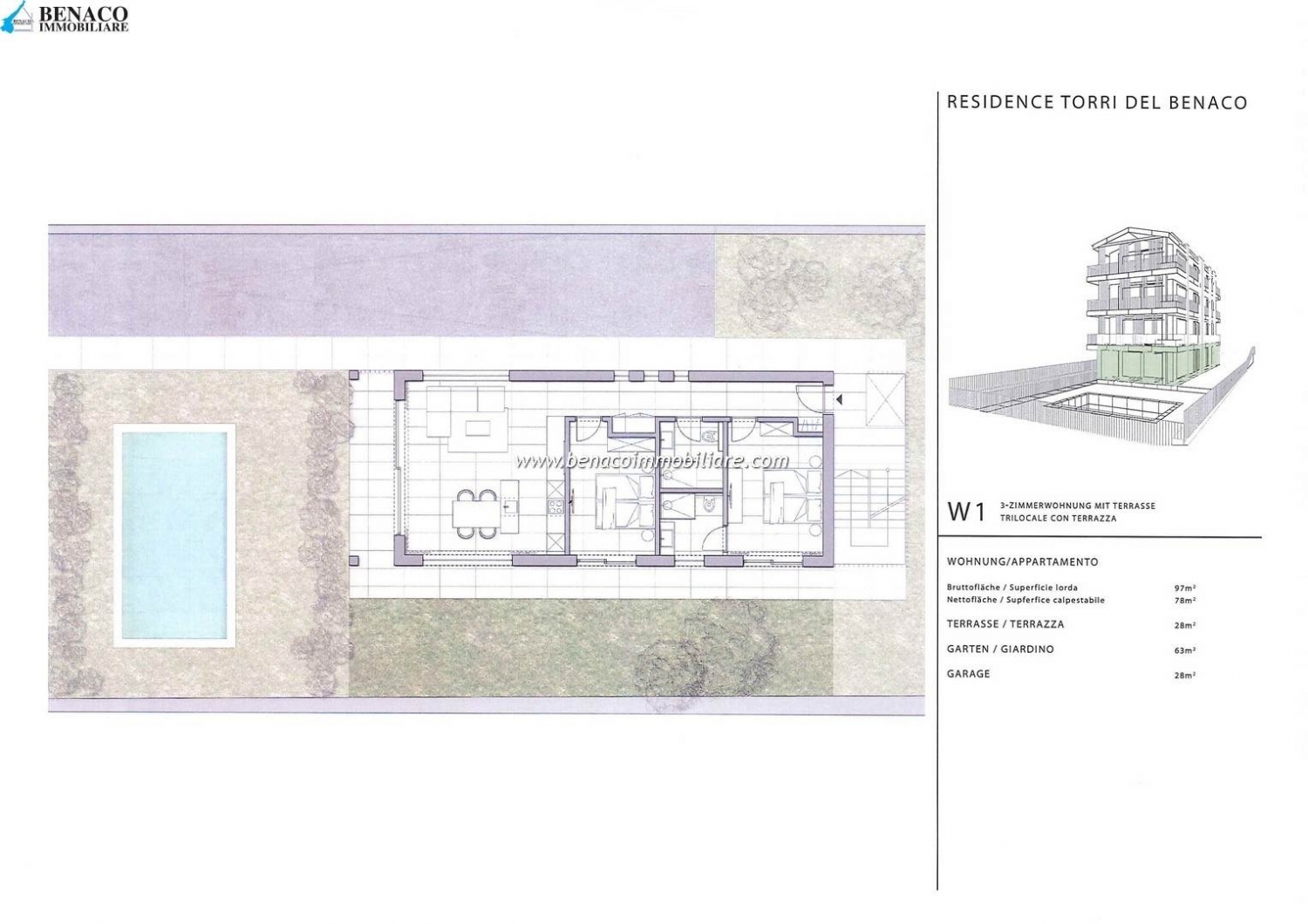 Torri del benaco a pochi passi dal lago, dal centro storico e dai molteplici servizi offerti dal paese, proponiamo nuovo e spazioso appartamento trilocale al piano terra. l'appartamento si compone di un'ampia e luminosa zona giorno con angolo cottura, che si apre direttamente sul porticato e il giardino di proprietà, due camere da letto matrimoniali e due bagni. L'appartamento è inserito in un nuovo complesso residenziale di sole quattro unità abitative con piscina ad uso comune. Completa la proprietà un garage al piano interrato.rif.179 classe energetica: a4