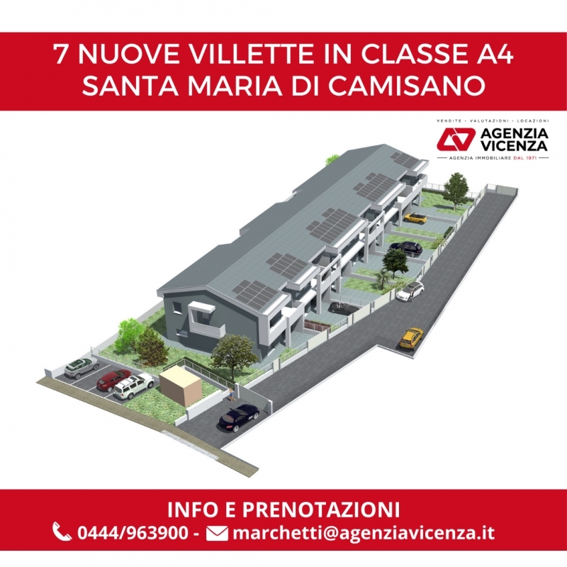Schiera di testa di nuova costruzione a santa maria di camisano vicentino - rif. 8098in quartiere residenziale molto tranquillo e chiuso al traffico, sono cominciati i lavori di costruzione di 7 eleganti villette a schiera con giardino - consegna a 12 mesi dal preliminiare 'chiavi in mano' l'unità immobiliare che vi proponiamo in questa scheda è la a7: schiera di testa in classe a4.l'immobile si sviluppa su due livelli: al piano terra troviamo un'ampia zona giorno di circa 51 mq, con cucina a vista, sala da pranzo e soggiorno. la zona giorno beneficia di grande luminosità, grazie ad un'ampia porta finestra che dà accesso diretto al giardino esterno. Sempre al piano terra troviamo un bagno finestrato, lavanderia separata e il garage con accesso diretto dalla zona giorno.al piano primo si sviluppa la zona notte con tre camere: una matrimoniale con zona guardaroba/cabina armadio e bagno padronale finestrato, una camera doppia, un'ampia camera singola, e un secondo bagno finestrato anch'esso finestrato.tutte le camere si affacciano su un terrazzo.completa la proprietà un portico di 12 mq e un giardino che si sviluppa sui tre lati della casa e che permette di avere uno o più posti auto esterni.n.b. Le foto sono relative ad altra nuova villetta della stessa lottizzazione, già rifinita, come potrà essere rifinita questa unità immobiliare.chiamaci ora per avere tutte le informazioni sulle caratteristiche costruttive e sulla personalizzazione delle finiture!consegna 12 mesi dal preliminare - chiavi in manofissate una visita con i nostri consulenti immobiliari!per info: marika piana cell agenzia vicenza sas di marchetti francescovia legione antonini 146 vicenza aderente alla borsa immobiliare della c.c.i.a.a. Di vicenza -