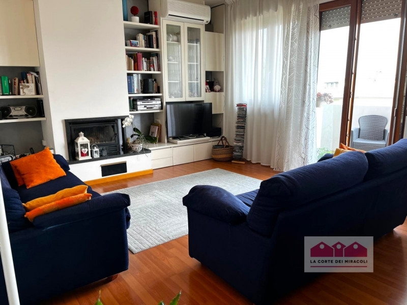 Costabissara: appartamento completamente ristrutturato con vista aperta, ambienti luminosi, caminetto, terrazze e garage, in contesto di sole 5 unità. Rif. Vt72 euro 255.000in un contesto riservato di sole cinque unità, parzialmente ristrutturato nel 2024, l'appartamento si distingue per qualità costruttiva, luminosità e attenzione agli aspetti funzionali dell'abitare. La posizione aperta regala una piacevole vista sui colli berici e sulle piccole dolomiti, valorizzando ulteriormente gli affacci.gli ambienti interni sono ben distribuiti e caratterizzati da finiture chiare e pavimenti in legno prefinito, elementi che contribuiscono a una percezione di spazio e continuità. La zona giorno è luminosa, con grandi superfici finestrate e la presenza di un caminetto a legna con focolare in ghisa a ventilazione forzata, pensato non solo come elemento estetico ma come reale integrazione al comfort termico. La cucina, arredata con tutti gli elettrodomestici, é aperta sul soggiorno ed è facilmente divisibile.la zona notte offre camere di dimensioni equilibrate, tra cui una camera matrimoniale generosa, ben illuminata e facilmente arredabile. Il comfort è garantito dalla climatizzazione e dai ventilatori a soffitto, oltre all'ottimo isolamento assicurato dai serramenti in pvc con doppio vetrocamera.i due bagni finestrati, uno con vasca e uno con doccia, rappresentano un valore aggiunto poco comune: entrambi dispongono di doppia finestra, veneziane interne motorizzate e zanzariere, assicurando luce naturale, ventilazione e privacy.gli spazi esterni comprendono due terrazze e un giardino condominiale curato con impianto di irrigazione. Completa la proprietà una soffitta di circa 20 mq illuminata da velux, oltre a garage singolo, spazio condominiale per biciclette e cortile con cancello motorizzato.dal punto di vista impiantistico l'immobile è aggiornato e pronto all'uso, con videocitofono wi-fi, tapparelle motorizzate e caldaia a condensazione di nuova installazione (2025) e' tutto in domotica!una soluzione pensata per chi desidera acquistare un'abitazione solida, efficiente e già aggiornata, in un contesto contenuto e ben organizzato, con spazi esterni fruibili e una qualità abitativa concreta.rif. Vt72euro 255.000la corte dei miracoli srlpiazza pontelandolfo, 3 - vicenza