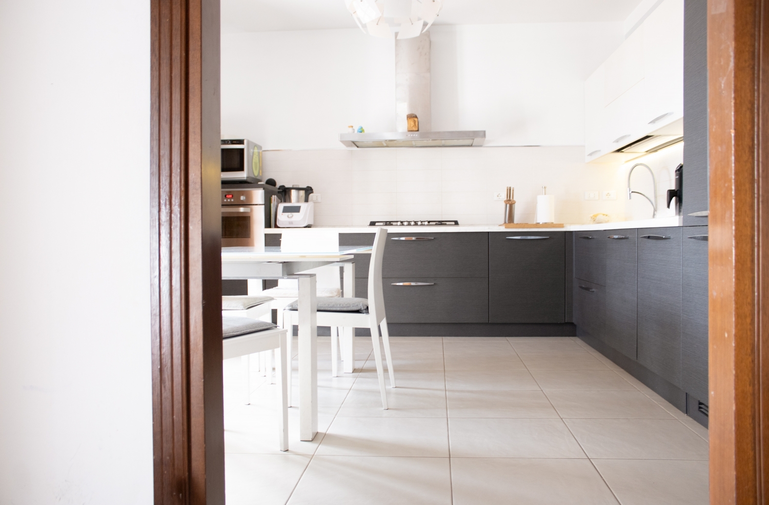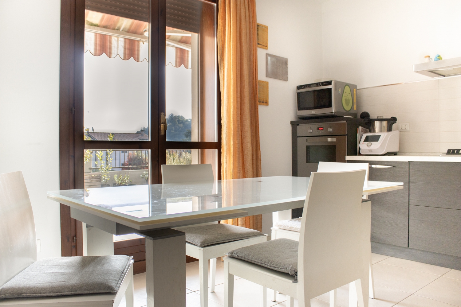 un ambiente unico nel suo genere, che garantisce privacy e una rara qualità della vita all’aperto, ideale per chi desidera godere di uno spazio esterno ampio e versatile senza la manutenzione di un giardino. Un vero e proprio prolungamento della casa, dove organizzare cene, momenti di relax o semplicemente vivere la quotidianità in armonia con la natura circostante.la cucina separata, anch’essa con accesso diretto alla terrazza, completa la zona giorno con eleganza e funzionalità.