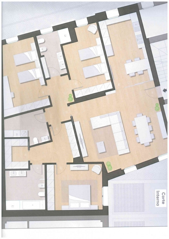 Scopri la tua nuova casa nel cuore di castelfranco veneto! questo splendido e spaziosissimo appartamento, situato al primo piano del prestigioso complesso 'bastia dei cappuccini', sviluppa una metratura di oltre 200 mq. Caratterizzato da una zona giorno importante, ben 63 metri quadri (cucina mq.19, pranzo e soggiorno mq.44), l'appartamento dispone di tre camere da letto, tutte doppie (dai 16 ai 19 mq), due eleganti bagni (mq.11,54 e mq.7,8), una lavanderia con bagno ospiti (mq.7,9) e una cabina armadio (mq.5). Questo immobile è perfetto per famiglie o professionisti che cercano comfort, stile e ampi spazi.gli interni moderni sono arricchiti da riscaldamento a pavimento e aria condizionata canalizzata in tutte le stanze, garantendo un ambiente sempre confortevole durante tutto l'anno. Inoltre, ogni finestra è dotata di zanzariere per la massima praticità durante l'estate.incluso nella proprietà c'è anche un garage al piano interrato che offre ulteriore comodità nell'accesso alla tua nuova casa.possibilita' di scelta nelle finitureil progetto di recupero 'bastia vecchia - vicolo cappuccini' si estende su quattromila metri quadrati nel centro storico della città ed è composto da otto distinti blocchi architettonici che circondano una magnifica piazza centrale di circa duemila metri quadrati. Al piano terra troverai unità commerciali mentre gli appartamenti ai piani superiori offrono privacy e tranquillità poiché il complesso è isolato dai flussi intensi di traffico carraio; inoltre la piazza è pedonale e privata.non perdere l'opportunità di vivere in uno degli angoli più affascinanti d'italia! per ulteriori informazioni o per prenotare una visita all'immobile contattaci allo