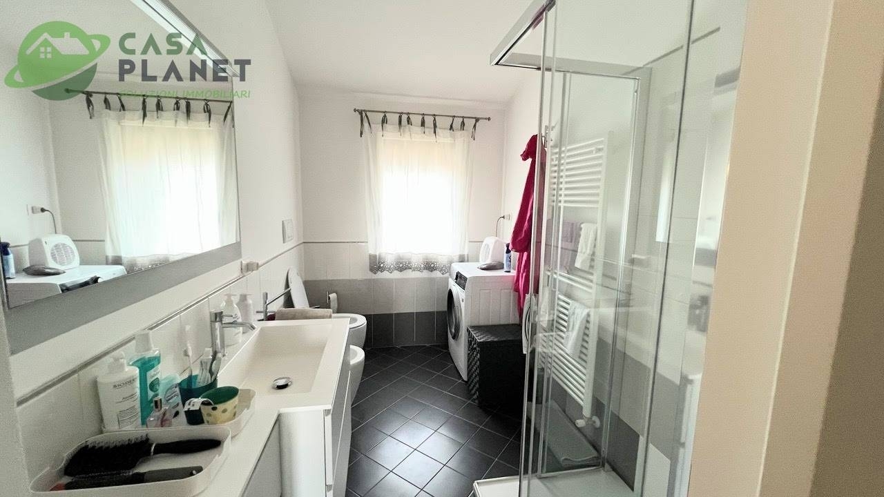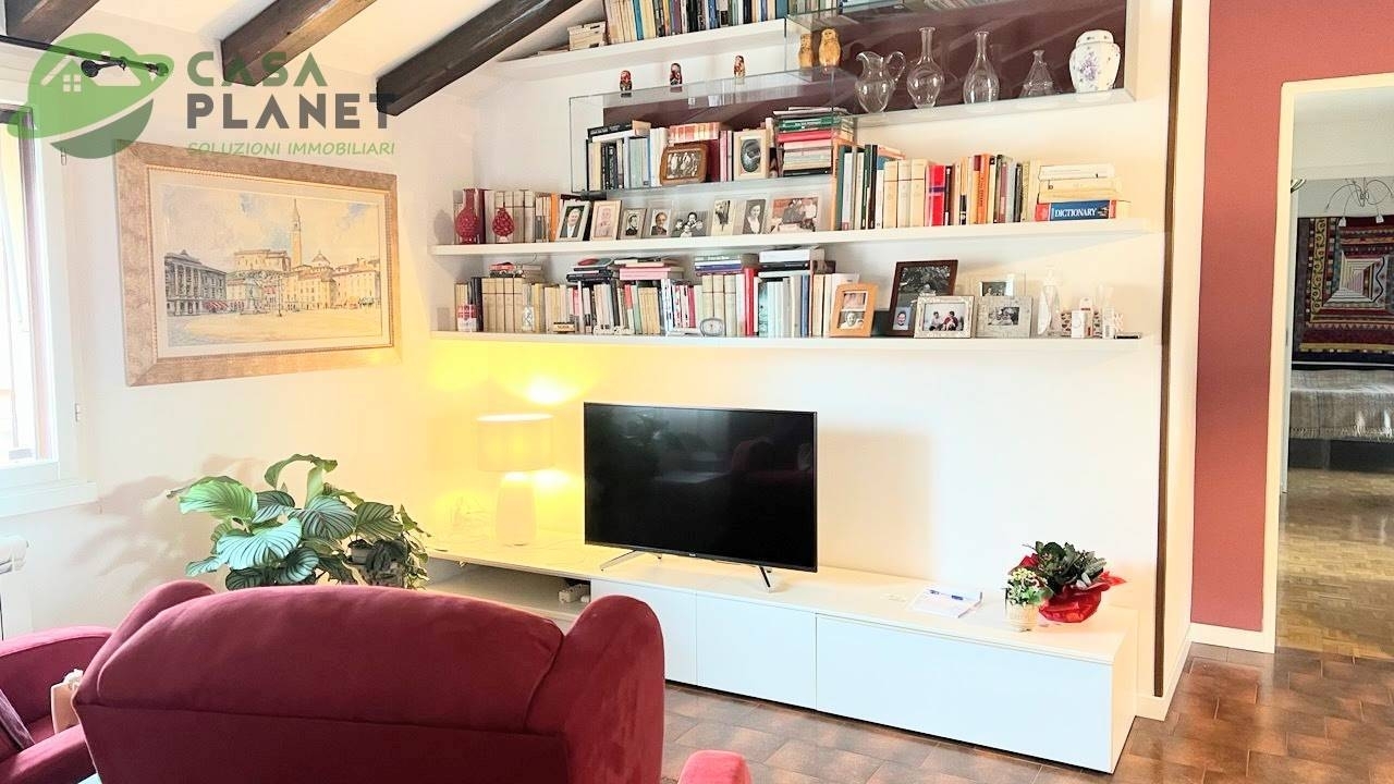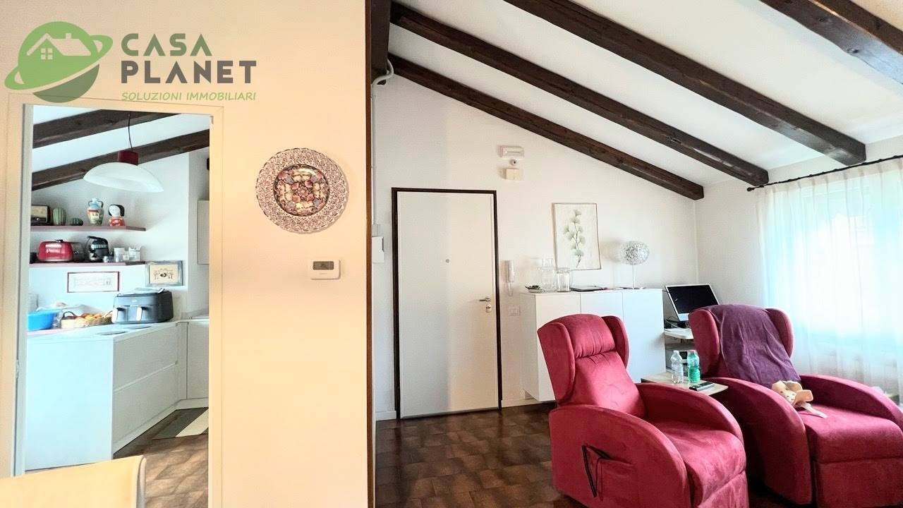 Luminoso ed elegante appartamento in vendita a paese, nella tranquilla zona di postioma.situato al secondo e ultimo piano di una signorile palazzina costruita con criterio nel 1990 e sempre mantenuta al meglio con delle spese condominiali che ammontano a 100 euro mensili, rendendo questo appartamento una soluzione economicamente vantaggiosa all'acquisto.l'appartamento ha una superficie totale di 110 m, di cui 90 m calpestabili con degli spazi interni ben distribuiti e ben sfruttati, con un'ampia zona giorno travata a vista composta da un luminoso soggiorno con affaccio su un terrazzo e una cucina abitabile, la zona notte è composta da due camere da letto spaziose e luminosissime una delle quali con terrazzo, uno studio, un bagno con finiture di alta qualità, è dotato di tutti i comfort necessari, tra cui una grande doccia.l'appartamento è stato recentemente ristrutturato con gusto e stile, garantendo un ambiente moderno ed accogliente con tutti i confort.gli infissi del 2022 sono in legno con doppi vetri, garantendo un'ottima insonorizzazione e un buon isolamento termico, il tetto è stato rifatto con un isolamento termico di 12 cm nel 2016, impianto fotovoltaico da 3kw, caldaia a condensazione del 2022, climatizzatori nelle zone del 2023, porte interne del 2022 come il rifacimento del bagno.l'immobile è dotato di due ampi garage al piano seminterrato. la posizione dell'appartamento è ideale per chi cerca una zona tranquilla e ben servita, in quanto a poche centinaia di metri si trova la stazione del treno e degli autobus, nelle vicinanze si trovano supermercati, scuole, parchi e tutti i servizi necessari per una vita comoda e rilassata.per informazioni su questo splendido appartamento chiamare il numero e chiedere del riferimento cp478.