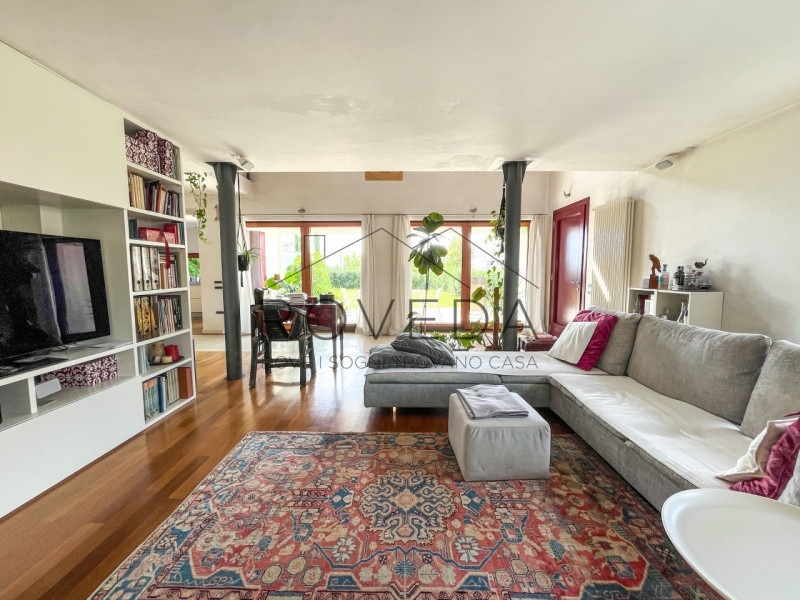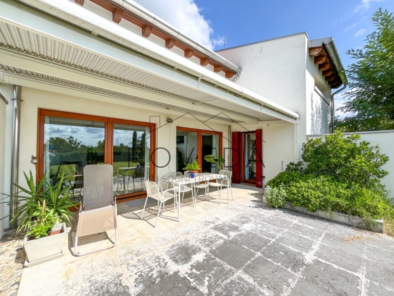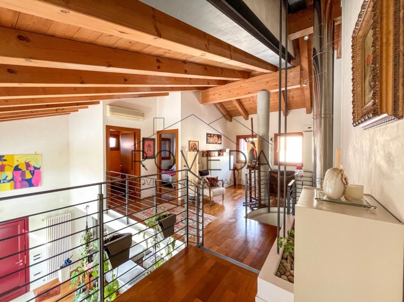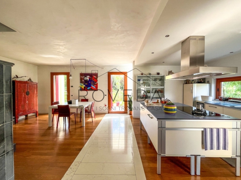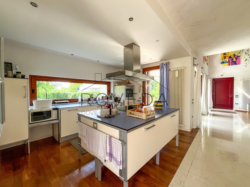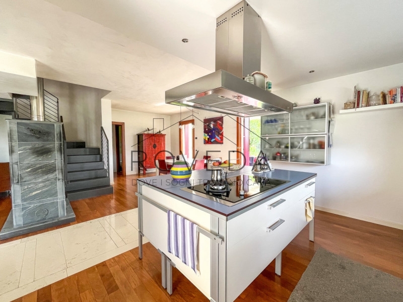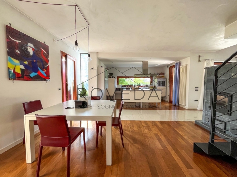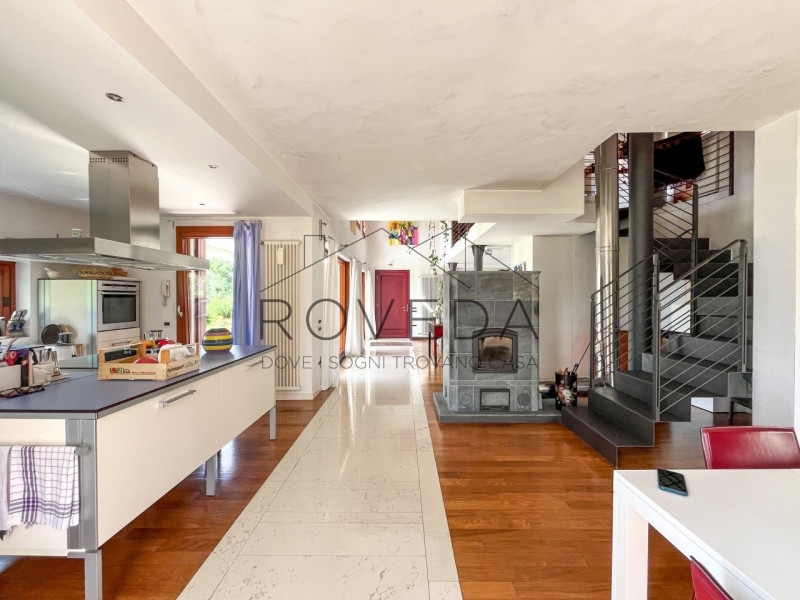 Preganziol - san trovasoriferimento: pr8scopri altre opportunità sul nostro sito e approfitta dei nostri servizi, tra cui la valutazione gratuita del tuo immobile.l'agenzia roveda immobiliare ha il piacere di presentarvi in una posizione tranquilla e immersa nel verde, questa villa singola circondata da 700 mq. Di giardino privato, con vista aperta sulla campagna circostante.questa villa singola è un rifugio di eleganza e comfort dove ogni dettaglio è stato pensato per esaltare la bellezza degli spazi.al piano terra si apre una zona giorno con le sue doppie altezze: l'ampio soggiorno con stube in pietra lavica, avvolto da finestre e vetrate che lasciano entrare il sole in ogni momento della giornata, si affaccia direttamente sul verde, creando una continuità naturale tra interno ed esterno. la cucina, moderna e funzionale arredata da un' isola centrale con piano a induzione diventa il luogo ideale per vivere la convivialità, mentre la finestra orizzontale regala una vista suggestiva sul giardino, completa il piano un bagno finestrato con doccia e una pratica lavanderia/centrale termica.salendo la scala a vista, lo sguardo si apre su un soppalco con ballatoio che domina la zona living, dove prende posto la zona notte, la camera doppia, il bagno finestrato con doccia e la suite padronale arricchita da cabina armadio e bagno privato finestrato con doccia e vasca da bagno.completa la proprietà il garage fuori terra.tra i lavori di ristrutturazione troviamo la caldaia a condensazione del 2021 e nel 2019 installati i panelli fotovoltaici da 3,5kw e i panelli solari l' immobile gode di una posizione comoda e ben servita: scuole, treno, autobus, farmacia, negozi di alimentari ecc..