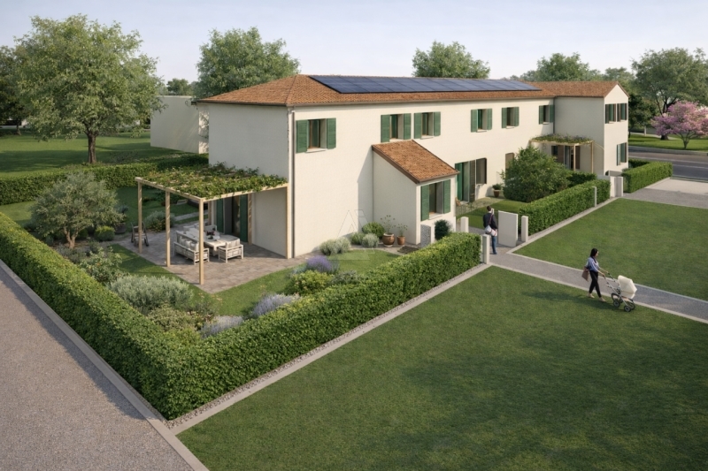 Proponiamo in vendita villetta a schiera di testa di nuova realizzazione, con giardino privato e ottima esposizione, in consegna a fine 2026. L'immobile si trova in posizione comoda e vicina al centro, a pochi passi dai principali servizi.la casa si sviluppa su due livelli.al piano terra troviamo un luminoso soggiorno con accesso diretto al giardino, cucina, un bagno e un comodo ripostiglio/lavanderia.al piano primo la zona notte è composta da tre camere da letto e due bagni, ideali per garantire spazio e comfort a tutta la famiglia.all'esterno è presente un giardino privato, perfetto per momenti di relax o semplicemente per godersi uno spazio verde riservato.l'abitazione sarà realizzata in classe energetica a4, con impianto fotovoltaico, riscaldamento a pavimento e sistema di riscaldamento e raffrescamento ad alta efficienza, per assicurare comfort abitativo e bassi consumi energetici.soluzione moderna e funzionale, ideale per chi desidera una casa nuova, indipendente e comoda a tutti i servizi.