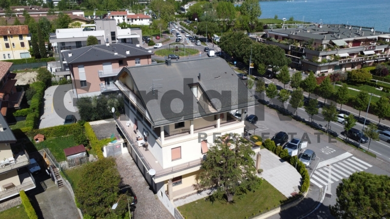 Sul prestigioso lungolago di sirmione, nella rinomata zona di lugana, proponiamo in vendita una rara ed esclusiva palazzina indipendente con vista mozzafiato sul lago di garda. L'immobile si sviluppa su tre livelli fuori terra per un totale di circa 573 mq commerciali e vanta un ampio giardino privato recintato di circa 600 mq che valorizza ulteriormente la proprietà.al piano terra troviamo due negozi distinti, ciascuno dotato di bagno e magazzino; uno dei locali dispone inoltre di scala interna collegata direttamente al deposito interrato. Gli accessi avvengono tramite plateatico privato immerso nel verde del giardino. Una scala centrale conduce ai piani superiori dove il primo piano ospita 2 trilocali speculari da circa 85 mq l'uno: soggiorno luminoso con angolo cottura, disimpegno funzionale, due camere matrimoniali spaziose e bagno finestrato oltre ad ampi balconi liberi su tre lati con incantevole affaccio panoramico.il secondo piano accoglie invece un grande appartamento signorile da ben 95 mq composto da soggiorno separato dalla cucina abitabile, disimpegno notte, due camere matrimoniali comode e bagno finestrato; anche qui spicca il terrazzo/balcone che circonda l'abitazione regalando viste spettacolari sul lago.completa la proprietà una generosa area interrata composta da garage doppio (con possibilità parcheggio multiplo), cinque cantine private ideali come depositi o wine cellar personale ed ulteriore servizio igienico dedicato agli spazi accessori.la posizione è strategica tra colombare e lugana: servita comodamente dai principali servizi cittadini e numerosi parcheggi pubblici nelle immediate vicinanze. Ogni unità gode della tranquillità tipica delle residenze esclusive ma senza rinunciare alla vivacità turistica del centro storico raggiungibile a piedi o in bici lungo le piste ciclabili panoramiche costeggianti il lago di garda. Questo stabile rappresenta dunque una soluzione perfetta sia come investimento immobiliare per messa a reddito (residenziale/commerciale) sia come dimora privata multifamiliare dal fascino unico grazie all'invidiabile esposizione diretta sulle acque cristalline del benaco.non lasciarti sfuggire questa irripetibile occasione! contatta subito l'agenzia gardalive real estate per maggiori informazioni o fissare una visita guidata.