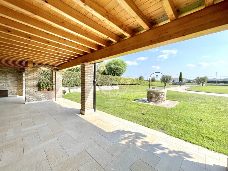 A san benedetto di peschiera, proponiamo villa singola immerso nel verde.dai ruderi di una antica dimora rurale la 'casa di ritrovo' nel cuore dei vigneti del lugana, è stata costruita una splendida villa. per la sua realizzazione su due livelli sono stati adottati inserti e criteri all'avanguardia di costruzione, ma soprattutto sono stati recuperati i materiali conservati e ripuliti, come tavelle, coppi, mattoni, pietre e sassi d'un tempo locali e provenienti anche dall'estero. Dall'importante ingresso con cancello elettrico, un sentiero tra il verde prato inglese della proprietà e gli ulivi, ci accompagna al porticato anticipato da un gelso di oltre 400 anni e da un antico e protetto pozzo artesiano in pietre.dall'ampio porticato in legno entriamo nell'ampio open space della zona giorno con una pavimentazione in travertino bianco bocciardato e riscaldamento sottostante. Qui un'attrezzata cucina con isola precede il grande soggiorno con camino che scalda tutta la villa e la scala autoportante con pedate in pietra rossa iraniana. la zona notte mansardata ha recuperato antichi roveri naturali per la pavimentazione e un sistema domotico di chiusura delle ante in ogni stanza, con dettagli che si alternano tra l'antico e il moderno. Nell'ambiente notte sono distribuite due camere grandi matrimoniali, una singola e un bagno con doccia in mosaico bisazza. tutte le banchine delle finestre del primo piano provengono dalle caditoie di piazza brà di verona.l'intero perimetro della villa è stato rivestito esternamente da muri in pietre, sassi, mattoni e coppi che raggiungono uno spessore di 70cm con intercapedine in sughero e cancellate di sicurezza a scomparsa per ogni porta e finestra. il solaio che divide i due piani è in travetti in legno e tavelle recuperate in antichi cascinali mantovani. tutta la proprietà è recintata e videosorvegliata anche da remoto ed è supportata da un impianto fotovoltaico di 6 kwatt con batterie d'accumulo e pompa di calore.il verde circostante della proprietà è di 4.700mq. Tutta la tenuta raggiunge con la villa quasi 5.000mq, 250mq l'abitazione e 100 la depandance con doppio garage, cantina, lavanderia, cucina di servizio, bagno con doccia e ripostiglio.siamo difronte ad una villa unica nel suo genere , moderna ma dal sapore della tradizione contadina antica, immersa nel cuore dei vigneti e delle piu famose cantine locali del lugana.