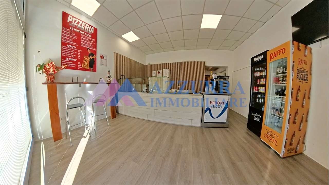In vasto, in posizione strategica e di forte passaggio, proponiamo in vendita attività di pizzeria e piadineria situata al piano terra, in zona ad alta visibilità commerciale.la cessione comprende tutta l'attrezzatura professionale, le macchine, il forno e l'arredo completo, tutti in perfette condizioni e pronti all'uso, ideali per proseguire immediatamente l'attività senza ulteriori investimenti.il locale, di circa 50 mq, è completamente a norma di legge, dotato di ampia vetrina fronte strada che garantisce ottima esposizione e luminosità, oltre a bagno conforme anche per persone con disabilità.ottima opportunità per chi desidera avviare o ampliare la propria attività nel settore della ristorazione, in un contesto dinamico e ben servito.nota: le mura non sono comprese nella vendita.classe energetica: g