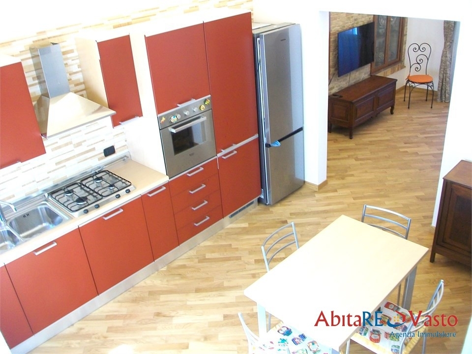 Vasto - centro storico, porta nuovanin posizione centralissima e di assoluto pregio, a ridosso dell'arco di porta nuova e a pochi passi dal centro storico, proponiamo in locazione annuale un raffinato immobile terra/cielo con ingresso indipendente, oggetto di recente ristrutturazione eseguita con materiali di primissima qualità e completo di arredi nuovi. L'accesso avviene direttamente dal piano strada. Un'elegante scala, valorizzata da un'illuminazione studiata, conduce al piano principale, dove si apre un soggiorno di grande impatto estetico, impreziosito da soffitto con illuminazione a led e mattoni faccia vista, in continuità con una cucina abitabile. Sullo stesso livello trovano spazio una camera matrimoniale, un bagno con doccia, una lavanderia e due balconi con doppia esposizione, che garantiscono luminosità e ricambio d'aria. Il piano superiore, collegato esclusivamente da scala interna e finemente rifinita, ospita una seconda ampia camera matrimoniale, una cabina armadio, un secondo bagno con doccia e un balconcino riservato. Completa la proprietà una soffitta pavimentata e rifinita, ideale come magazzino o ripostiglio. L'immobile si distingue per l'elevato livello delle finiture: parquet in tutti gli ambienti, impianto termo-autonomo, climatizzazione, zanzariere su tutte le finestre. Soluzione elegante e funzionale, ideale per chi ricerca indipendenza, comfort e una posizione centrale di assoluto valore. Libero da subito. Contratti annuali, riservati a conduttori referenziati, max. 2, con reddito certo e dimostrabile. Animali domestici non ammessi. - maggiori dettagli: videocitofono, lavastoviglie, rete adsl, cucina abitabile, doppio servizio, ripostiglio, climatizzato