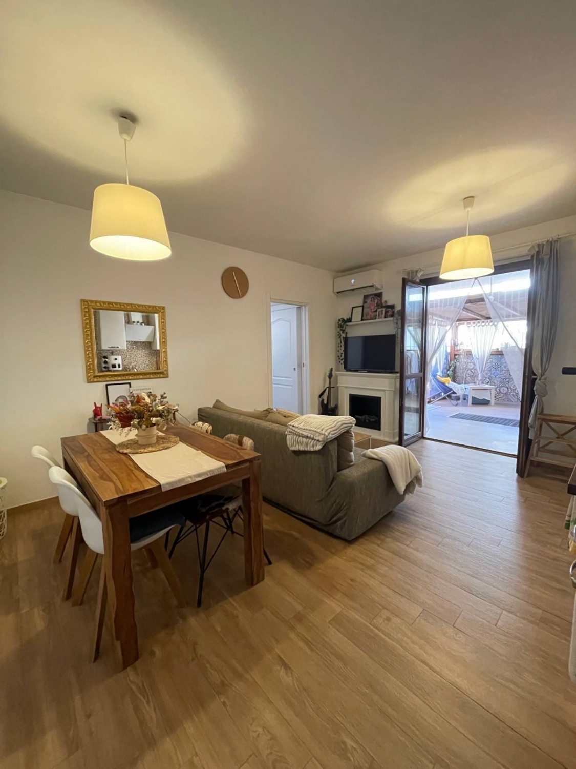 Vendiamo grazioso appartamento con terrazzo nella zona di montesilvano colli, situato al primo piano di una palazzina di recente costruzione del 2005 con bellissima vista sulle colline e sul mare.l'appartamento è in ottime condizioni e si compone di soggiorno con angolo cottura, camera matrimoniale, cameretta, bagno, balcone e meraviglioso terrazzo con copertura in legno, si trova al primo piano di una palazzina di soli tre piani con ascensore quindi comodo e con un costo di gestione basso. Molto luminoso e l'arredamento moderno e funzionale, ideale per chi è alla ricerca di una soluzione pronta per essere abitata. La metratura totale di 60 metri quadri è ben sfruttata e si adatta perfettamente alle esigenze di una giovane coppia o di una piccola famiglia. immobile molto bello, completamente ristrutturato con parquet a terra, infissi in legno doppio vetro, impianto di condizionamento freddo/caldo, impianto fotovoltaico, piano cottura a induzione, camino a bioetanolo, boiler acqua calda e completamente arredato. Garage ampio al piano seminterrato.una fantastica opportunità per chi desidera avere una casa confortevole e moderna in una delle zone verde e residenziale.certificazione energetica e.
