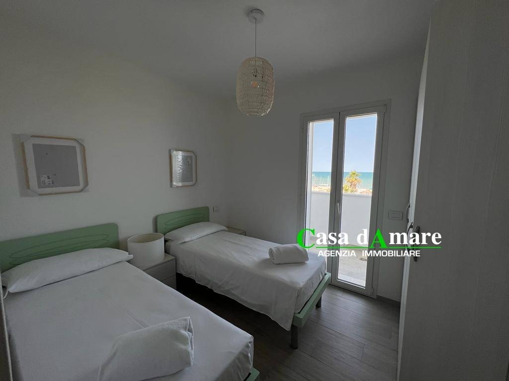 Appartamento di nuova costruzione sito in prima fila sul lungomare marconi di alba adriatica al numero 376 al terzo piano int 7 con ascensore composto da soggiorno cucina ,camera matrimoniale ,camera doppia o matrimoniale,bagno e due balconi tutti e due con vistamare. Completo di cantina al piano seminterrato di 7mq e posto auto interno chiuso da cancello automatico al piano terra di 13.5mq.impianti di riscaldamento e raffrescamento a pompa di calore e con impianto fotovoltaico autonomo da 1kw.bollitore da 110 lt per acqua calda sanitaria a pompa di calore a risparmio energetico.classe energetica a4.mediazione non dovuta non soggetto ad iva. Metri quadri commerciali compresi accessori 90mq