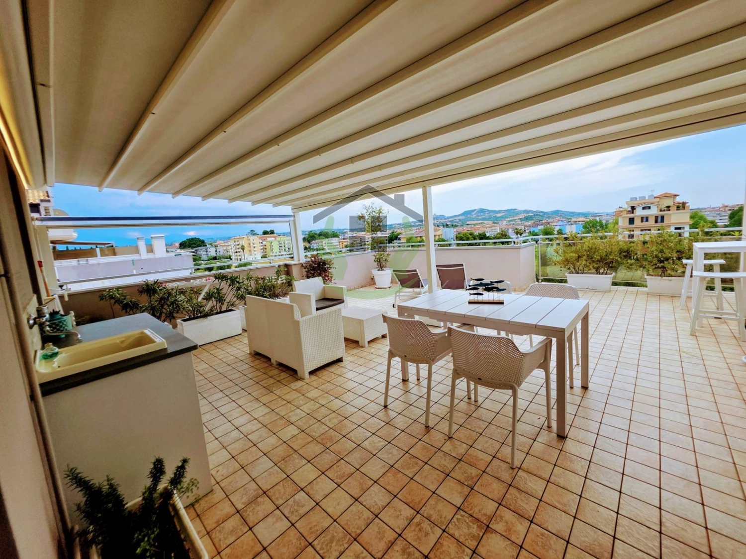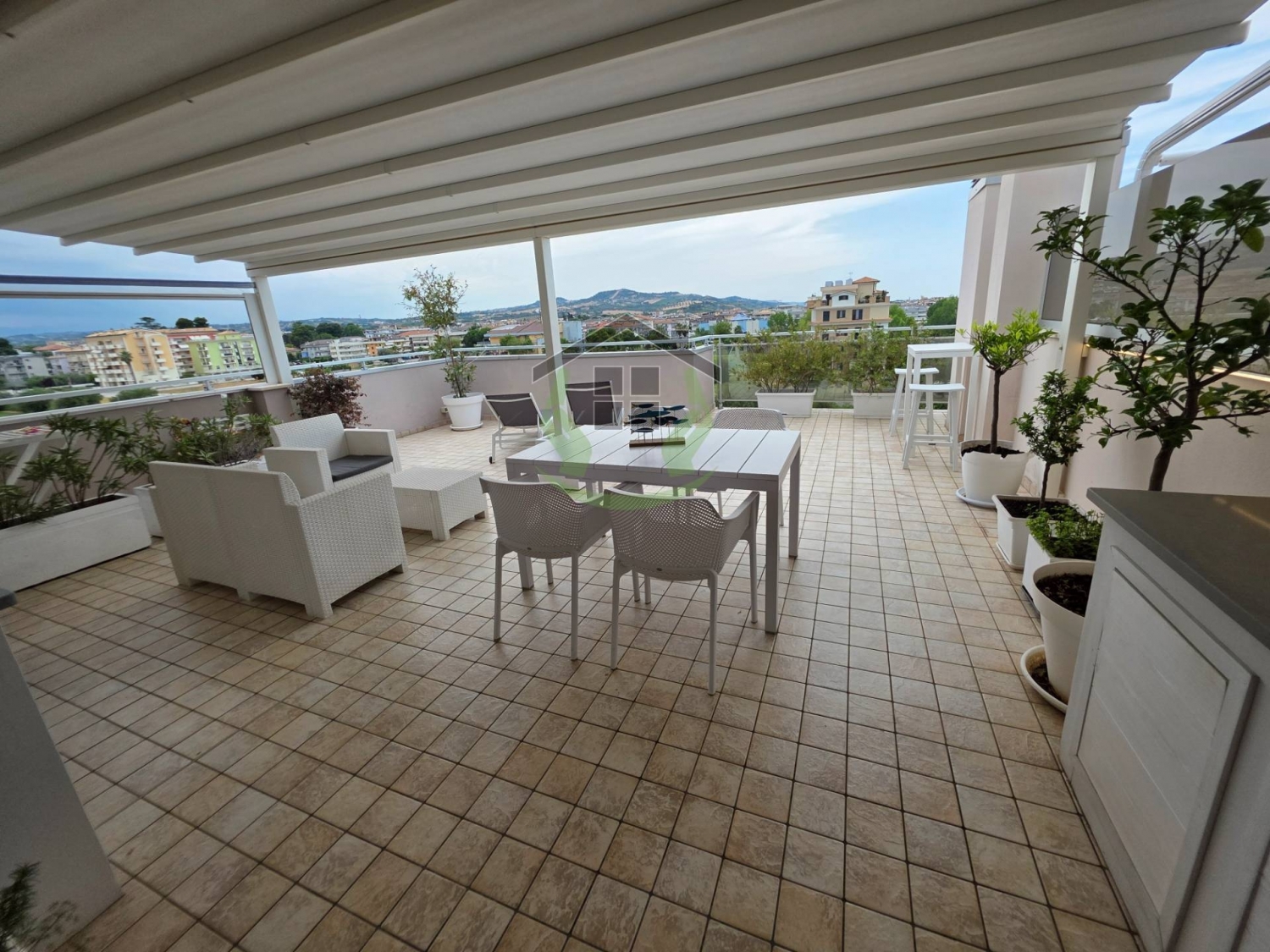 Rif 1804alba adriatica, te, in via ennio flaiano, 12 a soli 400 metri dal mare, in zona ottimamente servita, l'immobiliare oggi trovo casa propone in vendita appartamento al piano quinto servito d'ascensore all'interno di palazzina elegante e di recente realizzazione (anno 2009), proprietà completa di comodo garage al piano seminterrato.l'unità si presenta in ottime condizioni senza lavori da effettuare, internamente cosi suddivisa: ingresso su soggiorno con angolo cottura dallo stesso si ha accesso all'ampio terrazzo abitabile completo di pergolato di ottima manifattura, dallo stesso si gode di bellissima vista panoramica sia sul mare sia sulle colline circostanti, l'accesso al terrazzo si ha anche dalla camera matrimoniale, presente inoltre seconda cameretta oltre che bagno con box doccia e aspiratore.la proprietà abitativa è completata da comodo ed ampio garage di 20 mq il cui accesso risulta essere molto comodo, internamente lo stesso risulta essere completo di tutto (pavimentazione, elettricità, lavello e finestra bocca di lupo per areazione).ottima soluzione, in ottime condizioni. per maggiori informazioni salvatore liguoro.
