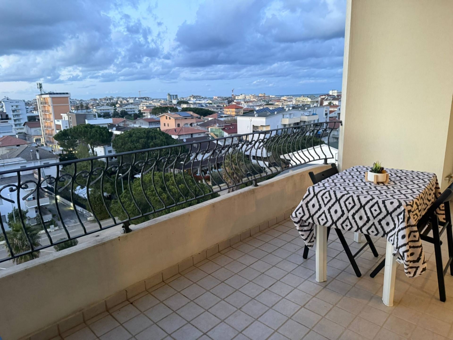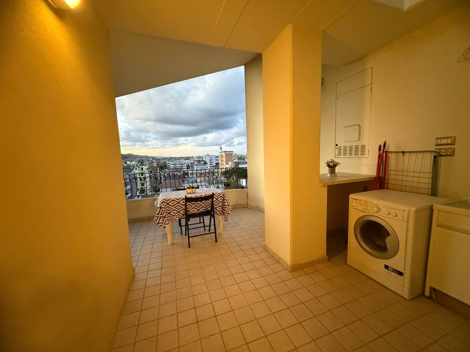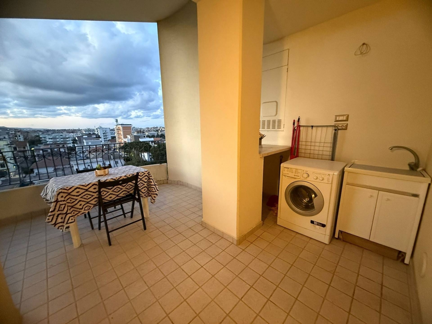 Cin: it067001c2gs7rjul2 zona centrale vista mare - appartamento mansardato di 65 mq al piano sesto con ascensore composto da ampio soggiorno con penisola e angolo cottura, camera matrimoniale con bagno, disimpegno, seconda camera matrimoniale, bagno principale con doccia, ampio terrazzo abitabile con zona lavanderia. l'appartamento è dotato di: posto auto non privato in ampio parcheggio pubblico davanti alla palazzina, wifii, lavatrice esterna con lavatoio, cucina attrezzata con lavastoviglie, ventilatori in tutti gli ambienti, smart tv 50 pollici in soggiorno, televisore 32 pollici in camera matrimoniale..4 posti letto.si affitta da sabato a sabato da giugno a settembreinfo giulia
