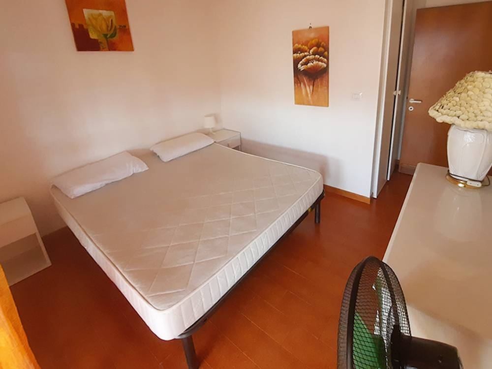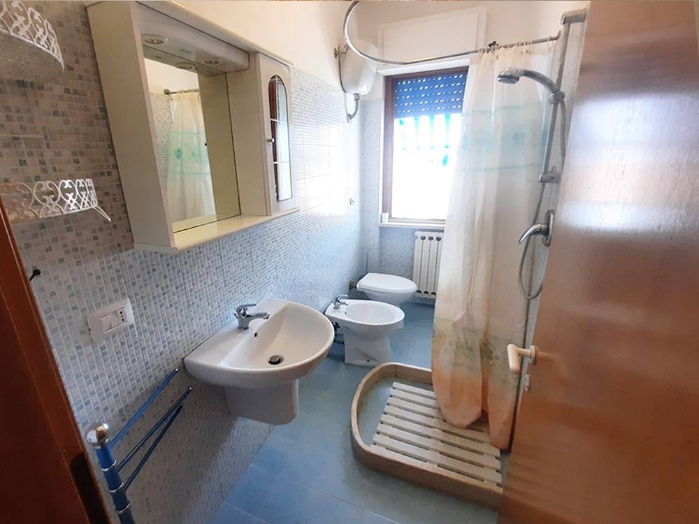 Nella centralissima e servita via mazzini, a 250 metri dal mare, bilocale con comodo balcone perimetrale, lastrico solare sovrastante da 140 mq circa, cantina pertinenziale e spazio di parcheggio su area condominiale.abitazione posta al terzo piano con ascensore, organizzata in soggiorno con cucina a vista, disimpegno, camera da letto, bagno con doccia e finestra, oltre a balcone su due lati - per complessivi 18 mq circa - e spaziosissima terrazza di proprietà, da 140 mq circa al piano quarto.realizzato nel 1979, l'appartamento beneficia di un bagno recentemente ristrutturato ed è dotato di tende parasole nuove, impianto termico autonomo e caldaia da poco sostituita.proprietà inserita in edificio circondato da un ampio giardino condominiale recintato e dotata di cantina da 4 mq.