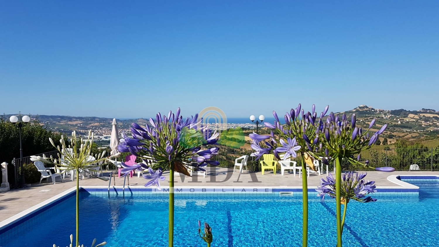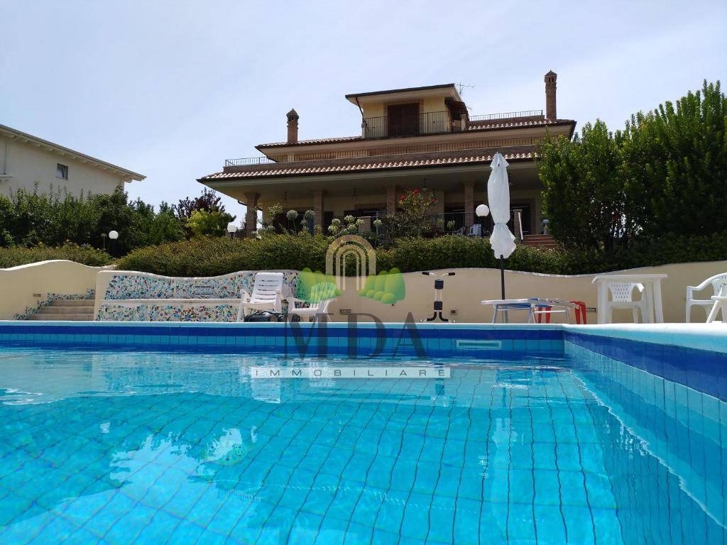 Villa con piscina, frutteto in vendita a controguerra, vista panoramica.la villa è immersa fra le colline abruzzesi, nel cuore del paese di controguerra, zona residenziale, tranquilla e con ampia vista panoramica sul mare adriatico e sulle vette appenniniche.la struttura è di recente costruzione, costruita da appena 15 anni, è di circa 724 mq. In totale e si sviluppa su tre livelli.i vari livelli sono collegati fra loro, oltre che dalla scalinata interna realizzata in legno e piastrelle di vietri, anche dall'ascensore.il piano terra, 208 mq. Circa, è composto da: ingresso, ampio soggiorno con sala da pranzo e caminetto, cucina abitabile, disimpegno, studio, camera matrimoniale con bagno dotato di vasca, doccia e finestra, lavanderia e bagno con doccia e finestra. il piano terra è interessato da un impianto di domotica.dalla zona giorno si accede ad un ampio terrazzo di 70 mq. Circa, tutto esposto ad est, dove è possibile godere di una gradevolissima vista sul mare.dal terrazzo si scende verso la piscina e da questa si può accedere al frutteto.la zona piscina è dotata di casse acustiche, compreso di locale pompe, depuratore, servizi igienici.al primo piano, 163 mq. Circa, si accede dalla scala interna e vi possiamo trovare: disimpegno, cinque camere matrimoniali, di cui tre con bagno dotato di vasca, doccia e finestra, ripostiglio.due delle camere da letto hanno accesso a due distinti terrazzi abitabili, uno di 16 mq. Circa esposto a nord-ovest e l'altro di 26 mq. Circa esposto sud-ovest.dalle altre tre camere si accede ad un terrazzo abitabile di 83 mq. Circa esposto ad est.il secondo piano, mansardato, 58 mq. Circa, è composto da: camera da letto, due ripostigli, un bagno con doccia e finestra.dalla mansarda ci si affaccia al balcone tutto esposto ad est ed al terrazzo abitabile, 28 mq. Circa, esposto a nord-est, dal quale la vista può spaziare dagli appennini al mare adriatico.al piano seminterrato, 70 mq. Circa, è presente un magazzino, un garage ed un locale deposito per l'attrezzatura della piscina.la villa dispone di: ascensore, sistema di domotica al piano terra compreso il portico ed il giardino, parquet in tutte le camere da letto, infissi con doppio vetro, inferriate a scomparsa in tutti gli infissi del piano terra, zanzariere in tutti gli infissi, vetri blindati nella parte bassa delle porte-finestra, persiane blindate, sistema di allarme, impianto di filodiffusione, condizionatori in cinque camere da letto, predisposizione per l'aria condizionata in altre due camere e nel soggiorno, predisposizione per la realizzazione di una cucina sia al primo piano e sia al secondo piano, scala lignea, piastrelle di vietri che vanno ad arricchire scala, bagni, camino, pavimentazione del soggiorno, possibilità di riscaldare la casa a zone distinte, cisterna da 100 quintali che permette l'irrigazione di tutto lo spazio esterno.la predisposizione per realizzare una cucina al primo piano ed una al piano mansardato, darebbe la possibilità di dividere la villa in più appartamenti.la villa, insistente su di un terreno di 3.000 mq. Circa, è completamente recintata e dispone di due ingressi distinti, entrambi con cancello automatizzato.all'interno della recinzione sono presenti dei posti auto.nei mesi estivi la struttura si trasforma in un gradevole e rilassante bed & breakfast.chiama ora la mda immobiliare al numero per maggiori informazioni e per fissare una visita.si precisa che le informazioni fornite non costituiscono parte integrante di un contratto.