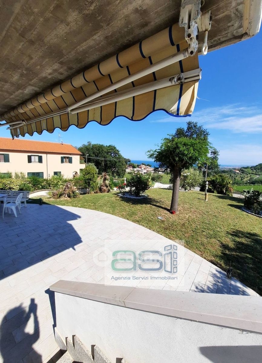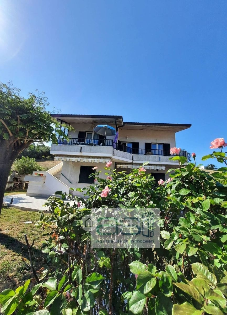 Tortoreto prima collina, proponiamo in vendita villa indipendente con splendida vista mare, contornata da natura, pace e tranquillità. La villa sorge su un lotto di 1150 mq con ampio giardino ricco di alberi da frutta e fiori. Dotata di impianti di illuminazione e irrigazione con possibilità di realizzare una piscina. la villa si sviluppa su due livelli, al piano terra con ingresso indipendente in fase di costruzione da terminare. Attraverso la scalinata esterna è possibile arrivare al primo piano composto da ingresso, ampio salone luminoso, camino e comoda cucina con affaccio in terrazza con vista mare. La zona notte dispone di 3 camere matrimoniali con parquet e balconi, cameretta/studio e doppi servizi. La villa si trova in buone condizioni, ottima come abitazione per più famiglie; adatta anche per chi volesse realizzare una struttura ascopo turistico. Arredata. Classe energetica = g