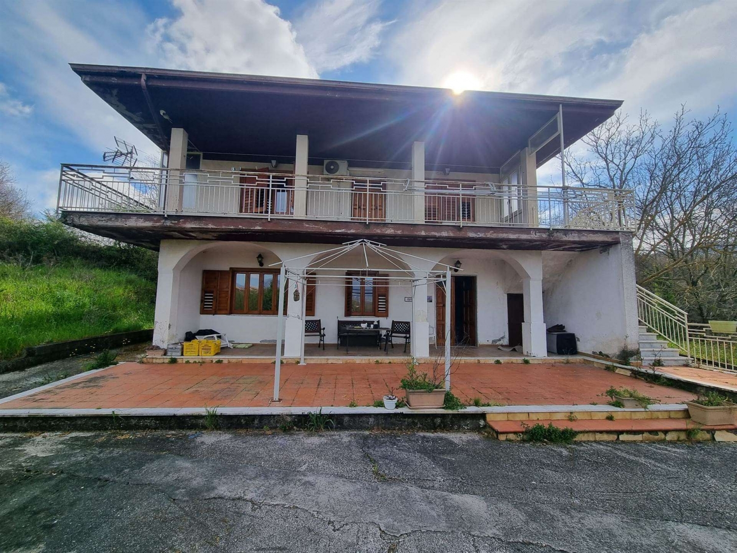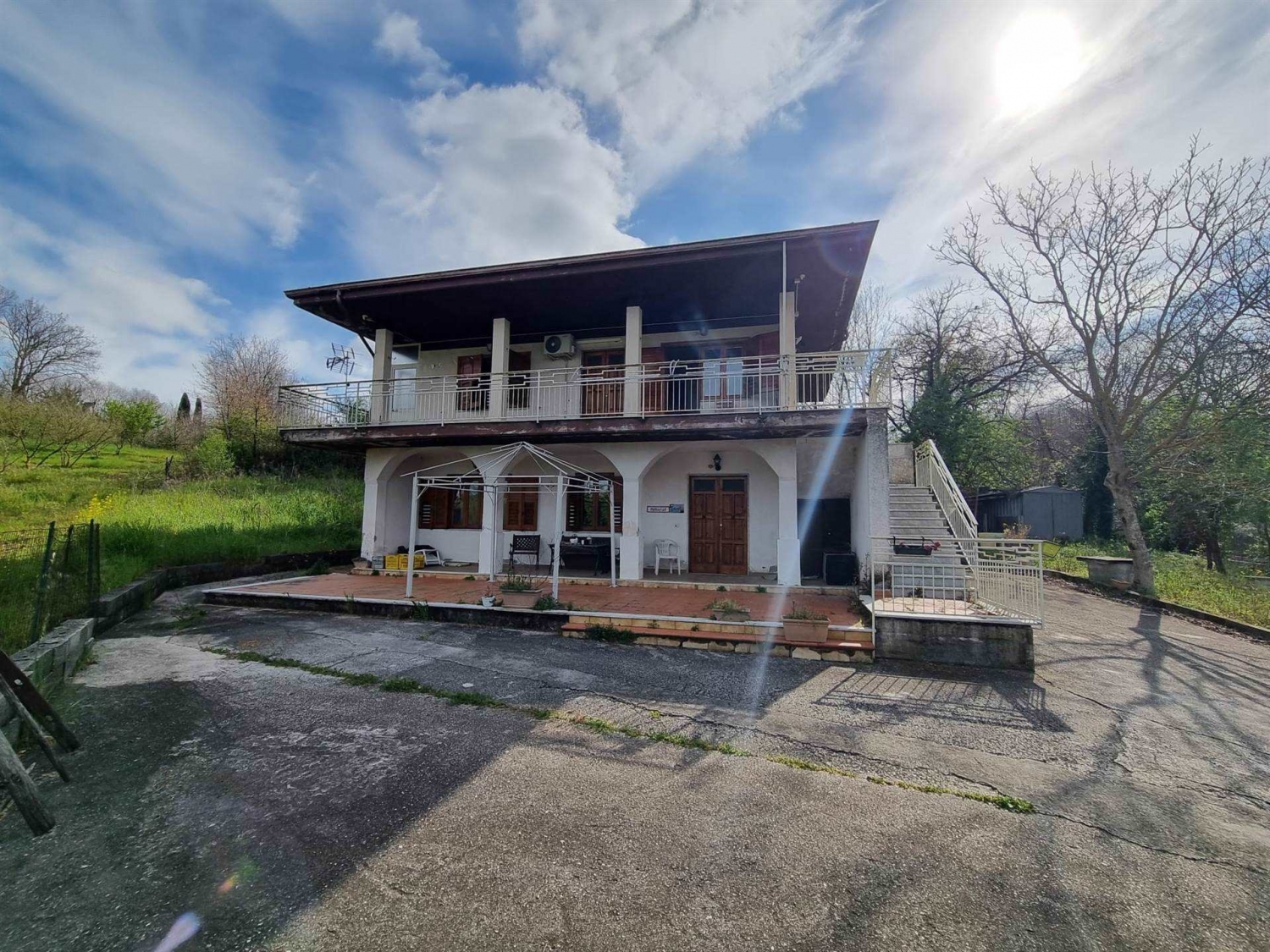 Villetta su 2 livelli con corte e giardino esclusivo.san potito ultra. In zona tranquilla, panoramica e facilmente raggiungibile, a soli 500 mt. Dal viale alberato ' s. Pertini' e a soli 3 km dal comune di atripalda, proponiamo in vendita un fabbricato su 2 livelli di complessivi mq. 140 oltre a porticato, terrazzi e garage doppio di mq. 40. L' immobile ricostruito negli anni 80' con la legge 219/81, è composto al piano terra da ingresso, ampio salone, cucina abitabile con termocamino, bagno e box auto. Il piano primo, raggiungibile sia da scala interna che esterna, è suddiviso in disimpegno, quattro camere e bagno oltre a terrazzi di pertinenza su due lati. Completano la proprietà una corte/giardino di mq. 2.000 circa che circondano il fabbricato, con ampio fronte strada sulla via provinciale ed ulteriori mq. 2.000 circa di terreno agricolo sottoposti alla stessa. Strada. Termo autonomo, alimentazione con gpl e termocamino. La proprietà presenta la predisposizione allaccio al gas naturale e dispone di allaccio alla rete fognaria comunale. Classe energetica: g