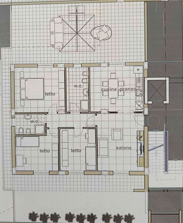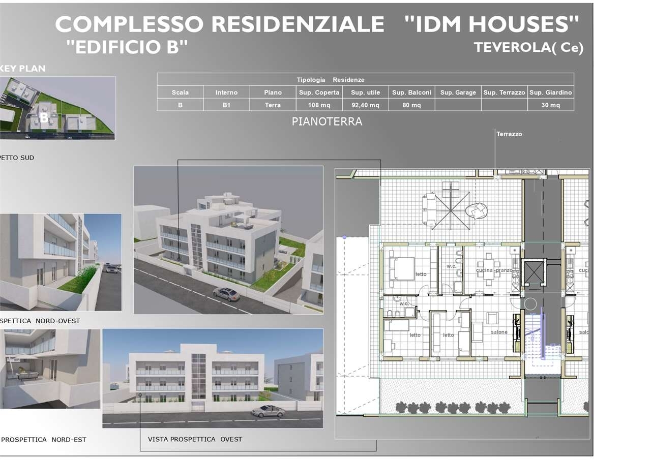 Teverola (ce) - in zona di nuova espansione a pochi passi dal centro e dai principali servizi proponiamo appartamento sito in piccolo e riservato complesso residenziale in fase di realizzazione con consegna prevista per primavera/estate 2027 sito al piano terra e composto da salone a vista, cucina abitabile, disimpegno, tre camere, doppio servizio, ampi spazi esterni esclusivi suddivisi tra terrazzi e giardino oltre box auto.ottime rifiniture ed alta efficienza energetica. classe energetica: in fase di valutazione