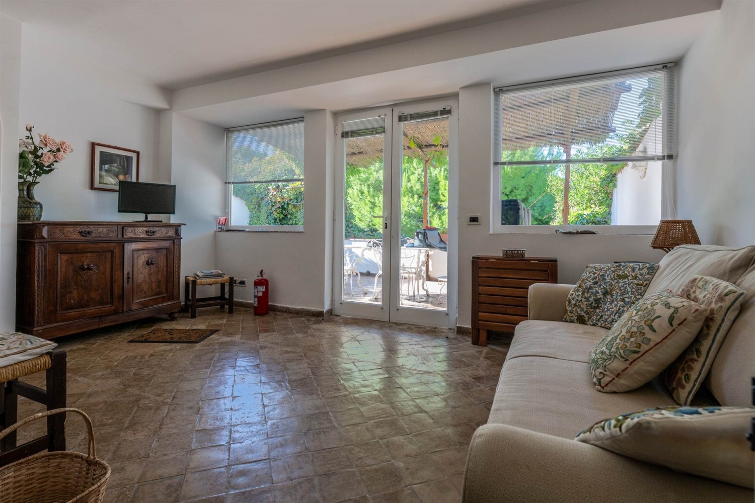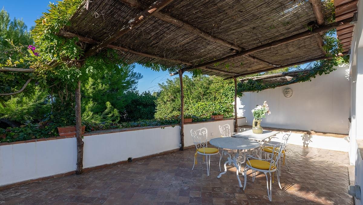 Casa germanetta è un villino posto a pochi passi dal centro di anacapri.l'immobile, mantenuto in ottime condizioni, è composto da 2 appartamenti con terrazzo, veranda e ampio giardino con vasca per pesci.l'accesso dalla strada è garantito da un viale che conduce direttamente al terrazzo dell'appartamento al piano terra. Questo si compone di un salottino molto luminoso e panoramico dotato di doppia finestra e porta-finestra con accesso al terrazzo panoramico e piccola cucina abitabile con finestra sul viale di ingresso. Un passetto conduce al bagno con finestra sul viale di ingresso ed alla camera da letto con cabina armadio e porta-finestra con accesso al terrazzo panoramico.all'esterno il terrazzo spazioso, con vista sul mare e parte del golfo di napoli, diventa il luogo ideale dove pranzare al fresco nelle giornate d'estate, coperti dalla tipica pagliarella.una scala esterna conduce al giardino del piano inferiore.qui l'appartamento si compone di un salottino ed una camera da letto entrambi con accesso autonomo al giardino tramite porta-finestra, ed uno spazioso vano che conduce al bagno.all'esterno una parte pavimentata dell'ampio giardino funge da terrazzo con una lunga seduta in muratura. Pochi scalini conducono al resto del giardino, con alberi, piante ornamentali e piccola piscina per i pesci, in gran parte affacciato sul mare e le isole del golfo di napoli, dove rilassarsi con un buon libro, prendere il sole o cenare la sera sotto le stelle in compagnia di amici. Al suo interno la grande veranda si presta a diversi utilizzi: dependance per ospiti, camera da pranzo, palestra o salotto rilassante.la posizione strategica e la assoluta tranquillità di questa incantevole dimora la rendono ideale come abitazione per una famiglia con figli adulti e/o come attività per locazione turistica.immobile regolare sotto il profilo urbanistico e catastale. Mutuabile. Classe energetica: g epi: 185,1 kwh/m2 anno