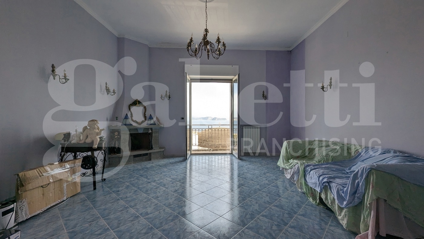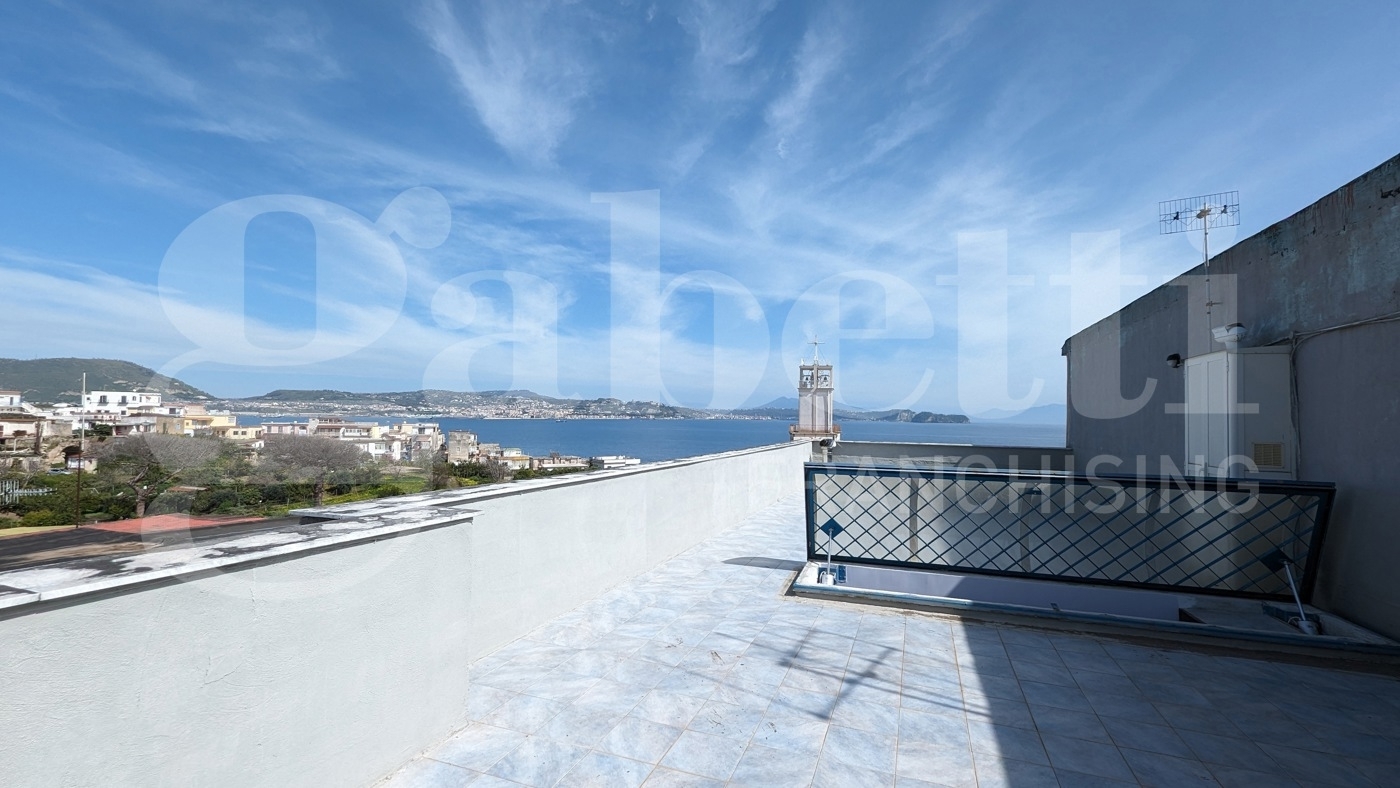 Proponiamo in vendita, a pochi passi dal litorale di marina grande, dal castello aragonese di baia e dal centro storico di bacoli, luminosissimo appartamento posto al terzo ed ultimo piano di stabile condominiale.la soluzione si estende su una superficie di circa 80 mq ed è internamente disposta in: cucina abitabile, ampio salone con camino e balcone annesso, camera da letto, bagno padronale finestrato ed ulteriore servizio.da scala interna si accede al terrazzo di copertura di circa 85 mq, completamente attrezzato con impianti di acqua e luce.sia dall'appartamento, che dal terrazzo, si gode di una meravigliosa vista panoramica sul golfo di pozzuoli.l'immobile si presenta in ottimo stato manutentivo e grazie alla sua ampia quadratura, si presta anche ad una diversa e più funzionale distribuzione degli ambienti interni, al fine di riadattarli alle rinnovate esigenze del vivere moderno. (disponibile ipotesi di progetto visibile in sede di visita)...per info ed appuntamenti:- gabetti bacolitel cell gabetti monte di procidatel cell gabetti fusarotel cell