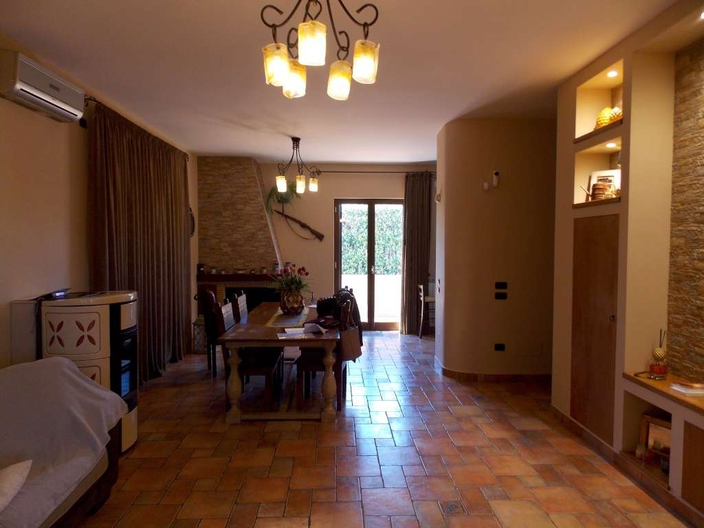 Soluzione indipendente in ottimo stato, termoautonoma e dotata di condizionatori, stufa a pellet e camino, composta da: ingresso, salone doppio, cucina abitabile, corridoio, disimpegno, 3 camere da letto, 2 bagni (1 con vasca e 1 con doccia), ampia balconata di 180 mq circa lungo tutto il perimetro dell'abitazione attrezzata con cucina esterna e forno a legna. L'immobile inoltre e' dotato di locale lavanderia di 12 mq circa, posti auto coperti da tettoia per 33 mq circa, ampio giardino di 215 mq e di area pertinenziale piastrellata di 520 mq. (l'immobile viene locato senza arredi). Visionabile solo previo appuntamento presso il nostro ufficio martedi, giovedi e sabato dalle ore 10.00 alle ore 12.00