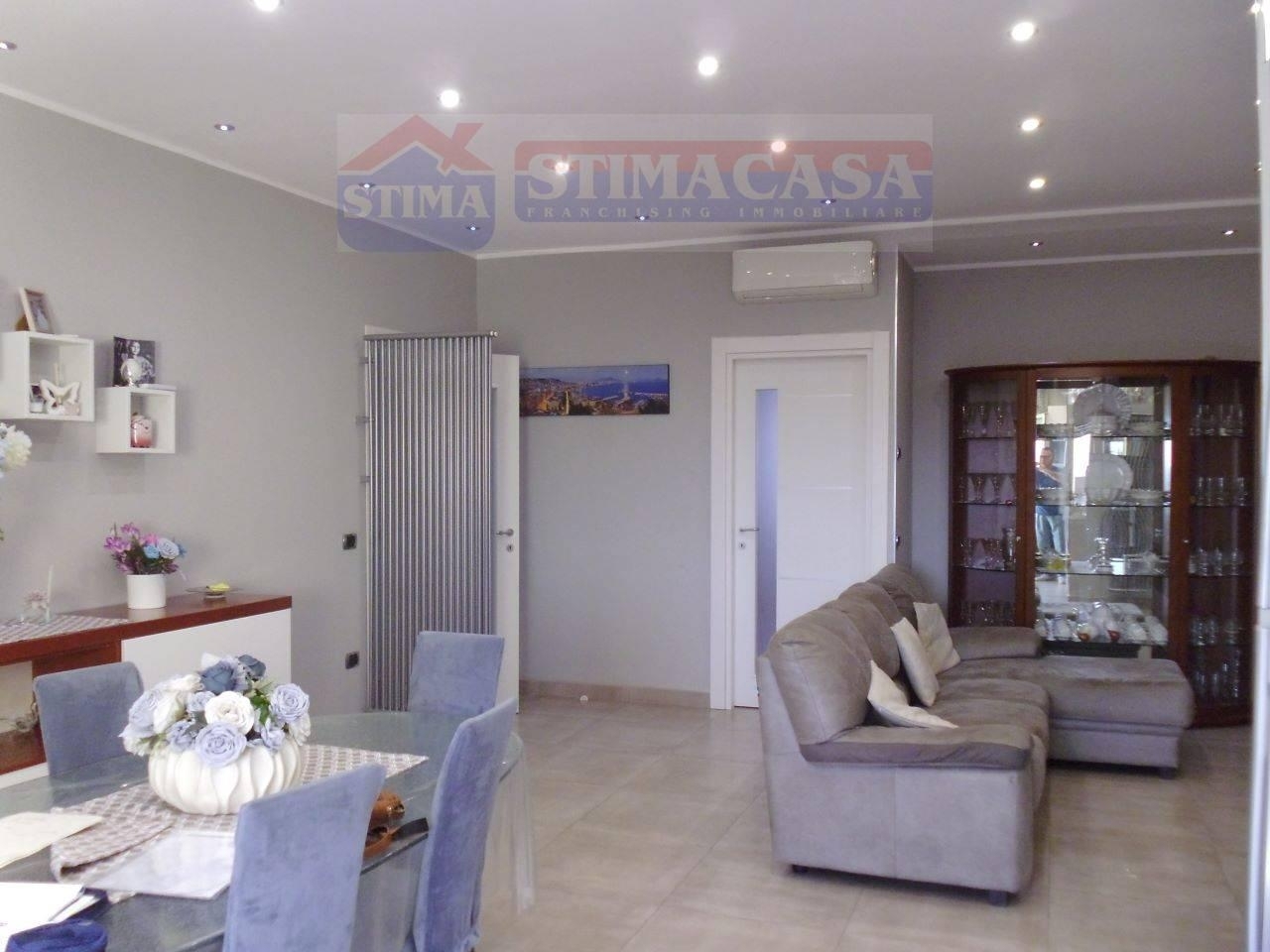 A casoria - stimacasa immobiliare propone in vendita un grazioso appartamento situato al terzo piano di una piccola e tranquilla palazzina, priva di ascensore, posta in posizione strategica in via etna.l?immobile, recentemente ristrutturato e deliziosamente ben rifinito, offre spazi ampi e versatili, con una superficie interna di circa 12 0 mq. Distribuzione interna:1 accogliente e ampio soggiorno con camino.1 cucina a vista con balcone.4 camere da letto spaziose.1 cucina abitabile. 2 bagni perfettamente funzionali.1 ampio e comodo ripostiglio.1 ampia lavanderia.l?accesso alla casa crea un tono accogliente che vi invita a entrare in questaproprietà splendidamente curata. Entrando, l?appartamento ospita sulla destra un versatile e accogliente soggiorno con camino, mentre a sinistra troviamo la cucina con l?accesso all? ampio balcone. Proseguendo verso il cuore della casa, troviamo una prima camera da letto con bagno privato in camera, poi una zona notte, dove trovano sufficiente spazio un?ampia camera da letto, altro bagno, altre due camerette e il ripostiglio. Completano la proprietà i diritti pari ad 1/6 del locale seminterrato per beneficiare di un posto auto coperto.concludiamo segnalando che la nostra proposta immobiliare è una deliziosa soluzione, ideale per chi cerca confort, eleganza e versatilità per un utilizzo immediato. Da non perdere. !!!.