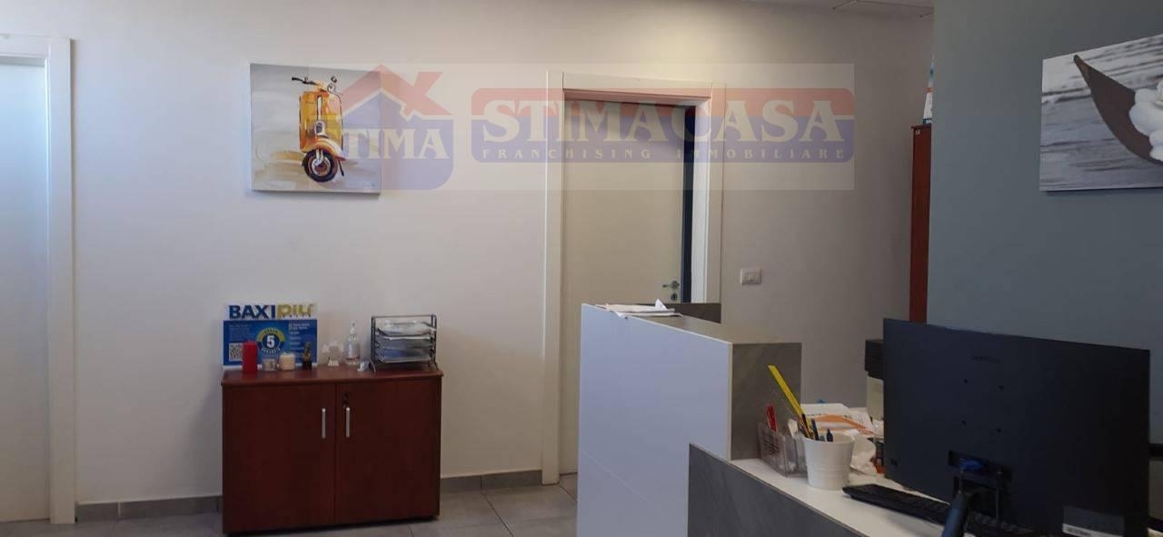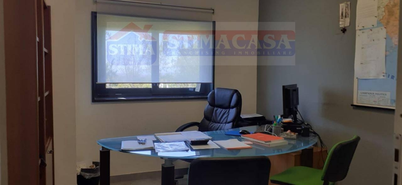 Casoria - in via circumvallazione esterna, ufficio di alta rappresentanza di 150 mq posto in complesso con servizio di guardiania, al primo piano senza ascensore, con all? interno sei ambienti oltre ai due bagni, con ottime rifiniture e dotato di impianto di climatizzazione e con ampia zona parcheggio (per 4 posti auto). Canone mensile ?uro 1.350,00 oltre iva, e disponibile da dicembre 2025.