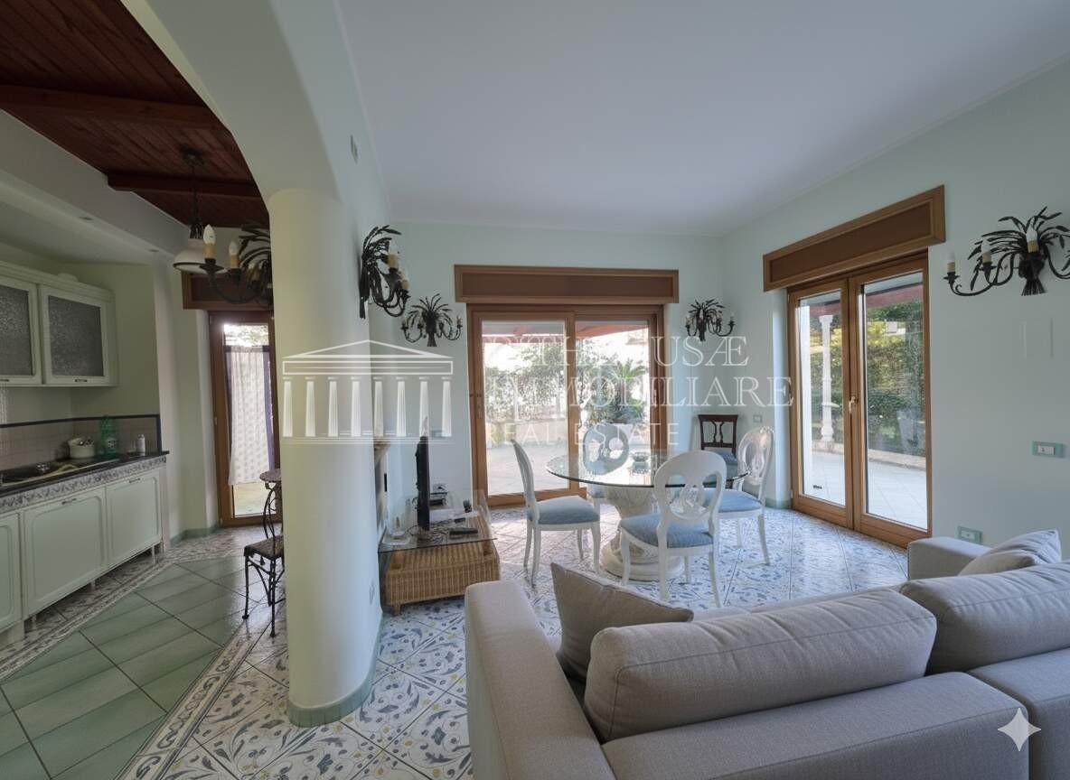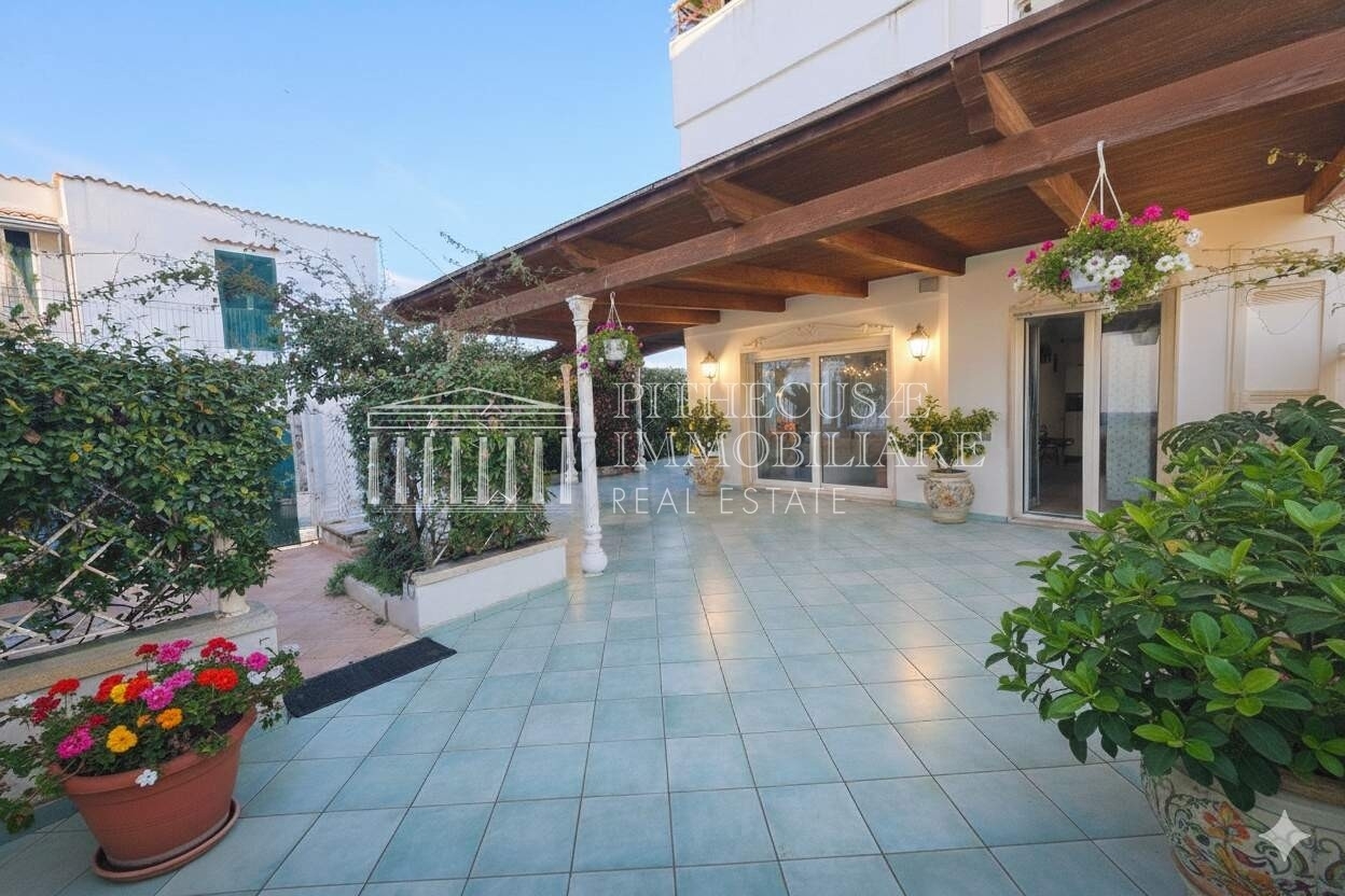 Nel cuore di ischia, con affaccio diretto sul mare e vista impareggiabile sul suggestivo castello aragonese, proponiamo una proprietà esclusiva di rara reperibilità.l'appartamento si sviluppa su 140 mq interni utili, distribuiti in modo razionale ed elegante, a cui si aggiungono circa 300 mq di terrazzi panoramici: un autentico valore aggiunto che trasforma la casa in una residenza unica, sospesa tra cielo e mare.distribuzione internala zona giorno è composta da un ampio soggiorno con cucina a vista, ambiente luminosissimo grazie alle grandi superfici vetrate fronte mare, rifinito con materiali di pregio ed elettrodomestici miele. Le ceramiche di alta qualità e le ampie vetrate creano una perfetta continuità tra interni ed esterni.la zona notte comprende:due camere matrimoniali vista mare, entrambe panoramicheuna cameretta, ideale come studio o stanza ospitidue bagni, di cui uno en suite nella camera padronale completo di sauna privatal'intera abitazione è dotata di impianto di climatizzazione a soffitto, soluzione elegante e discreta che garantisce massimo comfort.spazi esternii 300 mq circa di terrazzi panoramici rappresentano il vero punto di forza: ambienti esterni vivibili, perfetti per area lounge, zona pranzo all'aperto, solarium o eventuale area wellness, con vista dominante sul mare e sul castello. Una metratura esterna che consente di vivere la casa tutto l'anno.accessi e pertinenzedue ingressi carrabilidue ingressi pedonali, di cui due ad uso esclusivotre posti auto di proprietà, elemento estremamente raro nel centro dell'isolauna soluzione immobiliare di alto profilo, ideale sia come residenza principale sia come dimora di rappresentanza o investimento di prestigio, in una delle location più iconiche di ischia.
