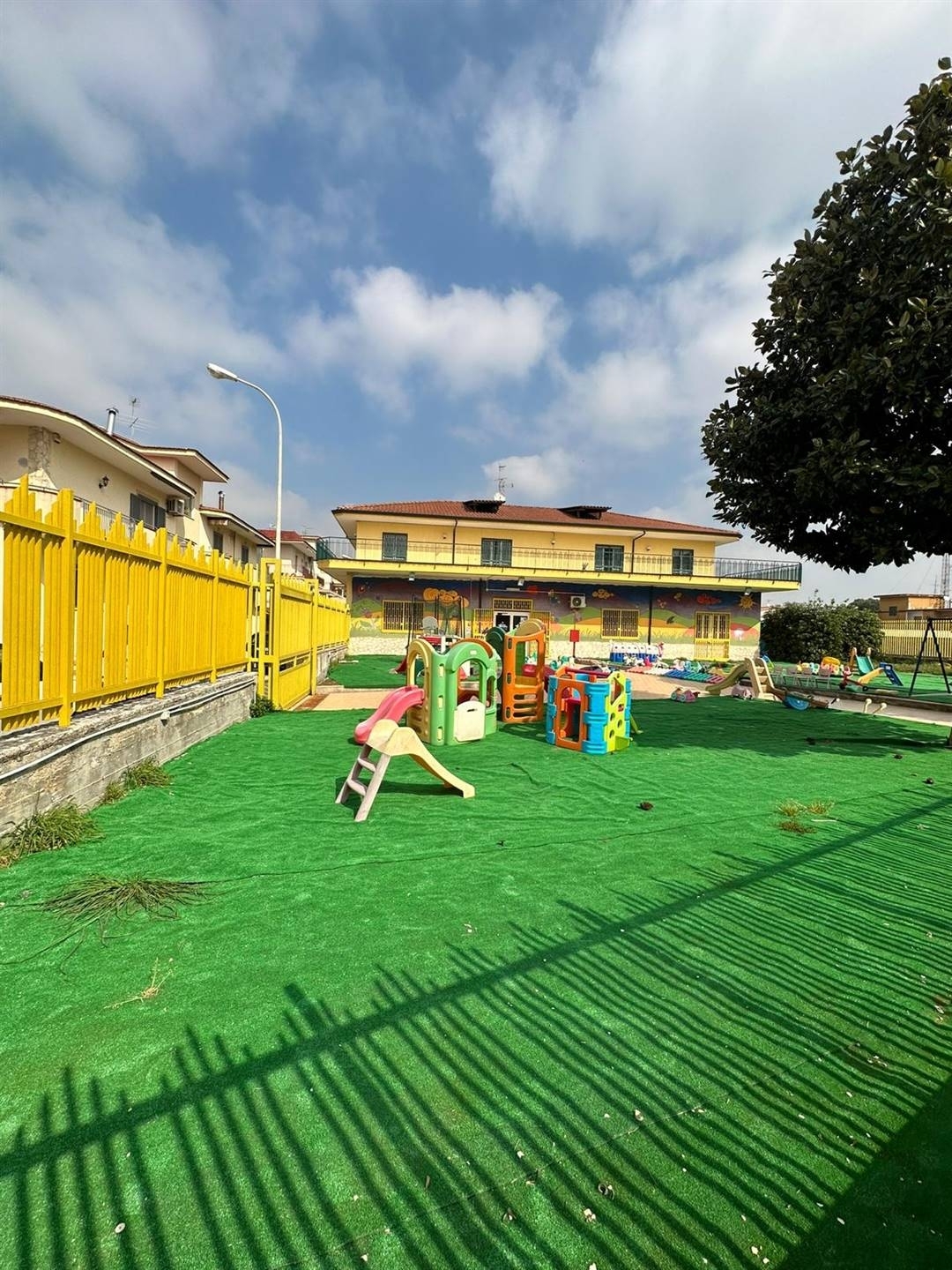 Sant'antimo, proponiamo in affitto appartamento al primo piano adibito a scuola composto da: 7 aule , un bagno per donne, un bagno per uomini ed un bagno personale, oltre ad un ampio terrazzo ed un ampio spazio esterno per posti auto. La struttura dispone inoltre di un vano al piano terra di circa 25 mq con bagno annesso ed uno spazio esterno comune anche agli altri appartamenti adibito ad area giochi. Classe energetica: g