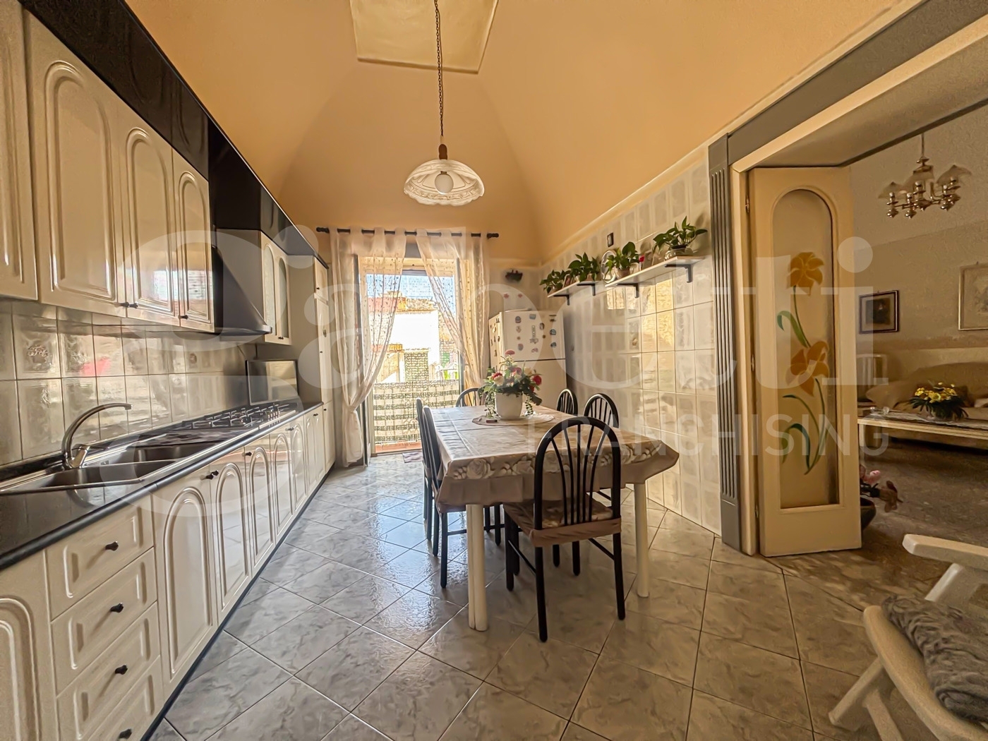 Nel cuore del centro storico di scafati, a pochi passi dalla chiesa principale, dalla ferrovia dello stato, dalla circumvesuviana e da tutti i principali servizi (scuole, tra cui l?istituto tecnico ?pacinotti? e il liceo scientifico ?r. Caccioppoli?, negozi e uffici), proponiamo in vendita un appartamento semi indipendente spazioso, luminoso e subito abitabile.l?abitazione, posta al primo piano e priva di spese condominiali, è composta da:ampio salone d?ingresso, subito dopo la prima rampa di scale;cameretta e camera da letto matrimoniale;ulteriore soggiorno, con possibilità di ricavare una terza camera da letto;cucina abitabile con accesso diretto al balcone;doppia esposizione e doppia balconata, che garantiscono grande luminosità e ventilazione naturale;due bagni;due ripostigli nel vano scala privato.gli ambienti interni sono ampi e ben distribuiti, con soffitti alti a cupola che donano fascino e un senso di ariosità agli spazi.al piano superiore troviamo un terrazzo di copertura di pari dimensioni dell?abitazione, pavimentato e in ottimo stato, accessibile tramite una comoda scala interna. Il terrazzo gode di una splendida esposizione panoramica con vista sul vesuvio e dispone di un locale verandato ad uso sgombero.completano la proprietà la possibilità di parcheggio auto nella corte comune e l?assenza di spese condominiali, che rende l?immobile ideale per chi cerca indipendenza e tranquillità nel pieno centro cittadino.???? punti di forza:centralissimo e ben servitosemi indipendente, nessuna spesa condominialeampi spazi e doppia esposizioneterrazzo panoramico con vista vesuviopossibilità di ricavare la terza camera da lettoposto auto in corteperfetto per famiglie o per chi desidera vivere in una casa accogliente, luminosa e comoda a tutti i servizi, senza rinunciare all?indipendenza e al fascino delle abitazioni d?epoca.