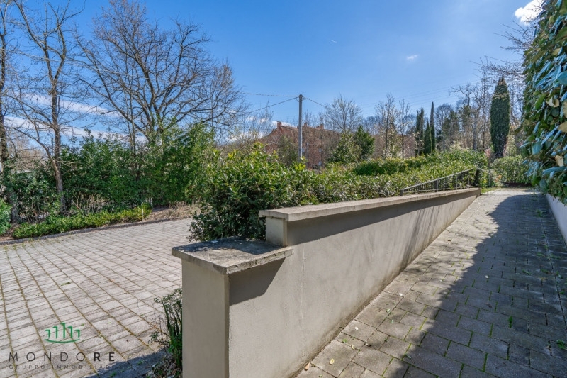 Nella prima collina di rastignano, in una posizione particolarmente tranquilla e riservata ma allo stesso tempo comodissima a tutti i servizi, con il centro del paese raggiungibile a piedi in pochi minuti, proponiamo in locazione una splendida porzione di villa inserita in un contesto esclusivo.l'abitazione nasce dal recupero di un antico casale di fine '800, completamente demolito e ricostruito con grande attenzione alla qualità costruttiva e alle finiture, di altissimo livello. Il risultato è una residenza che coniuga il fascino della tradizione con il comfort e la tecnologia di una casa moderna.l'accesso alla proprietà avviene tramite un elegante cancello carrabile che conduce a un ampio piazzale privato, dove trovano spazio due posti auto scoperti di proprietà. Dal medesimo piazzale, attraverso un portellone automatico, si accede anche alla rimessa coperta, che dispone di ulteriori due posti auto ed è collegata direttamente all'abitazione tramite un comodo secondo ingresso interno.al piano terra l'ingresso principale, dalla corte interna, introduce a una luminosa sala di circa 28 mq con doppio affaccio sul giardino privato, ideale per momenti di relax e convivialità. La cucina è abitabile e arredata, mentre un bagno di servizio con antibagno completa il piano.salendo al primo piano si trovano tre camere da letto caratterizzate da splendidi soffitti in legno con travi a vista; la camera padronale è dotata di bagno privato, mentre un secondo bagno finestrato, con vasca e doccia, serve le altre camere. Al piano superiore è presente un ampio vano mansardato, perfetto come studio, area hobby o stanza per gli ospiti.il piano seminterrato ospita due grandi ambienti rifiniti come taverna, uno dei quali con accesso a un cavedio e l'altro direttamente collegato alla rimessa coperta; sono inoltre presenti in questa zona gli attacchi per la di una lavanderia.l'immobile è dotato di caldaia a condensazione collegata ai pannelli solari per la produzione di acqua calda, riscaldamento a pavimento, aria condizionata in tutti gli ambienti ad eccezione del seminterrato, tripli vetri nella zona giorno, cancelletti di sicurezza, zanzariere, allarme, tapparelle elettriche e impianto di irrigazione automatica. La casa si presenta in condizioni pari al nuovo ed è in classe energetica b.il canone di locazione richiesto è di € 2.000 mensili. Si richiede un mese di deposito cauzionale e fideiussione bancaria. La locazione è riservata esclusivamente a persone referenziate.